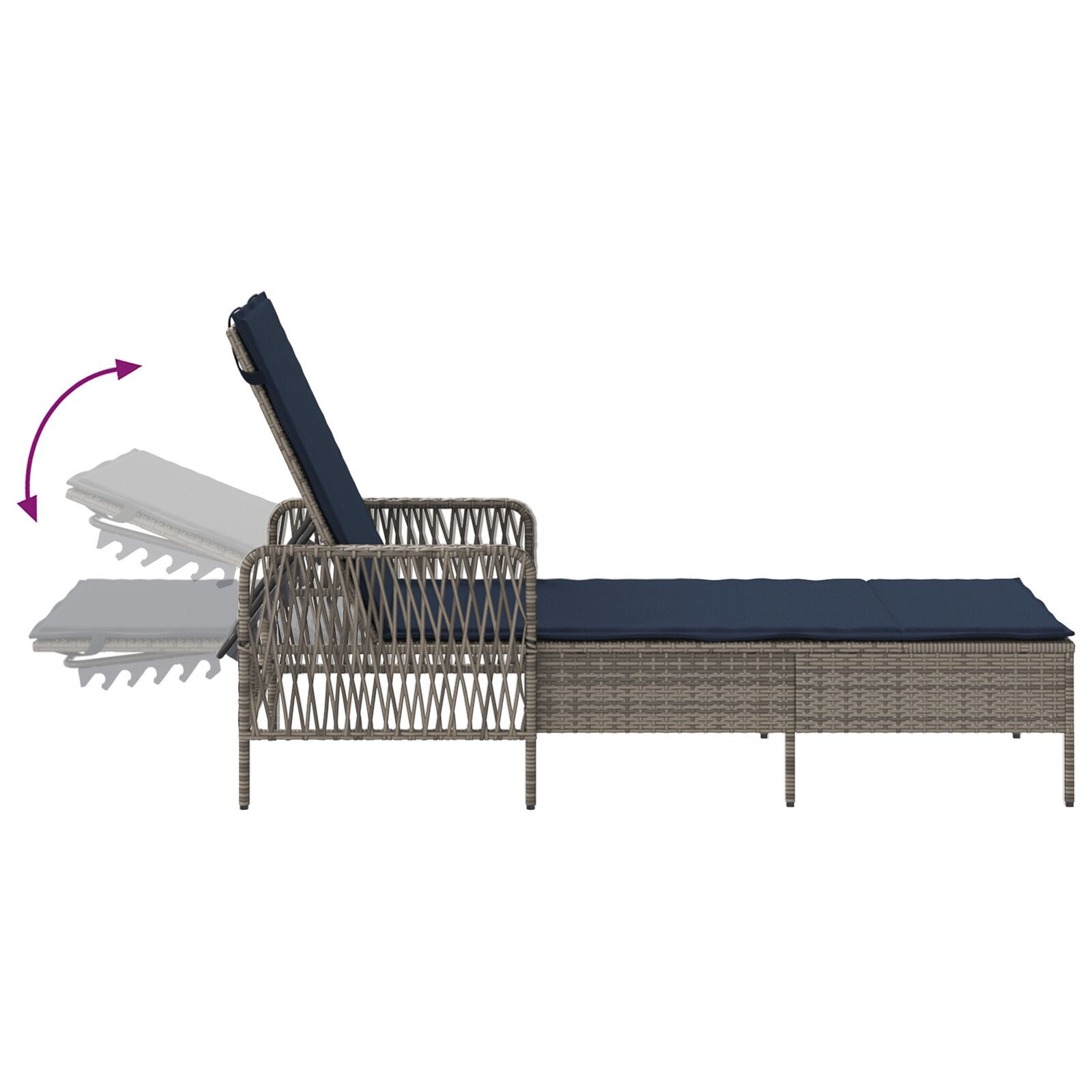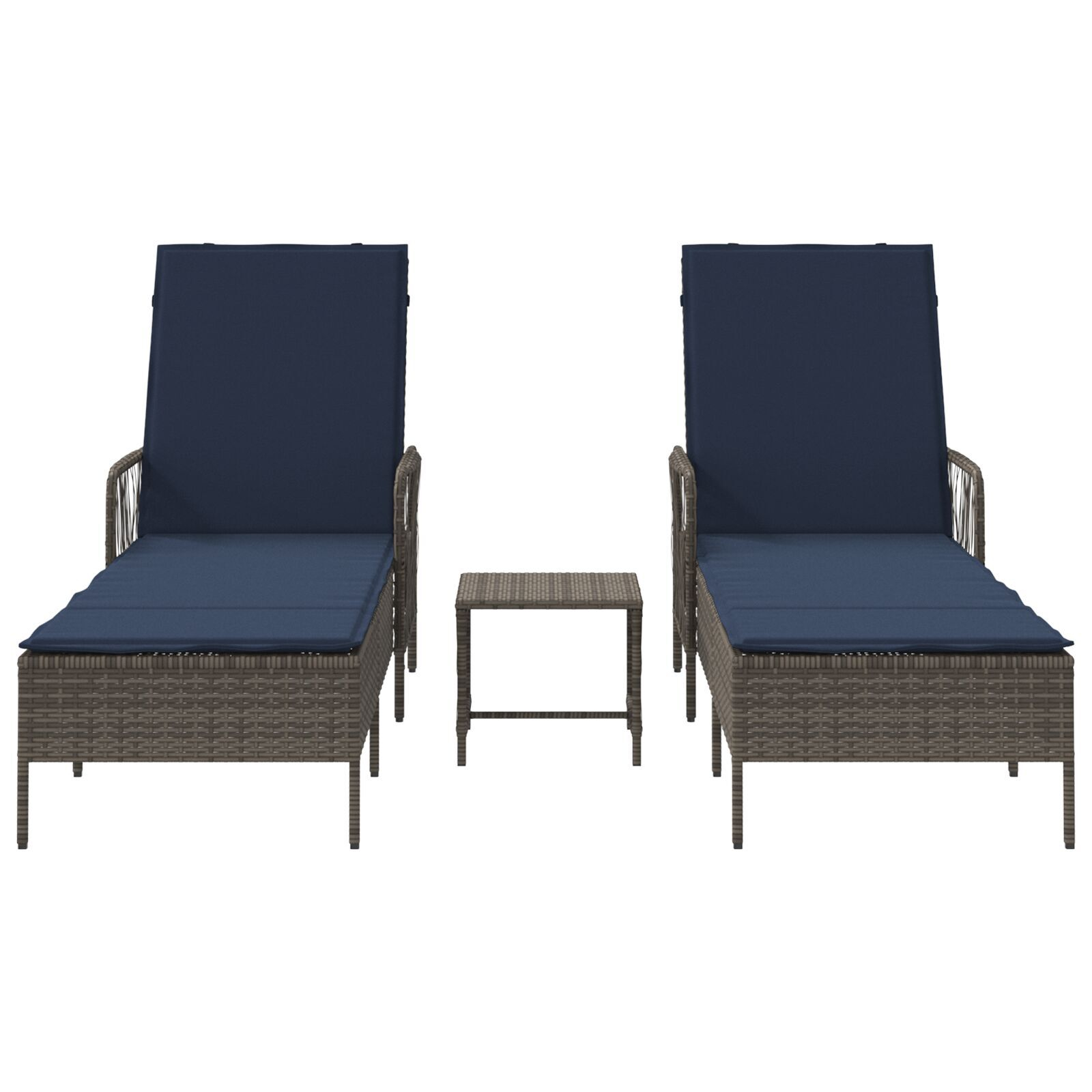 Șezlong Set de 3 Gri și bleumarin Ratan PE, metal Pliabil