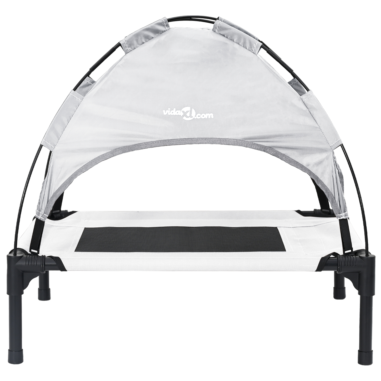 Pat ridicat pentru câini cu acoperiș detașabil Argintiu Oțel