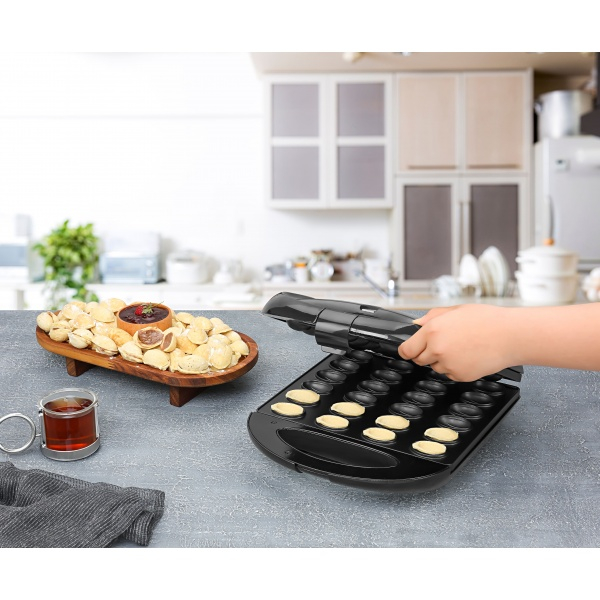 Reteta pentru nuci poate fi gasita in majoritatea locuintelor si, cu siguranta, aproape toata lumea a avut ocazia sa incerce aceasta delicatesa cel putin o data. Dispozitivul nostru Zilan ZLN2816 va va permite sa pregatiti 24 de jumatati la un singur ciclu de coacere. Puterea maxima a dispozitivului este de 1600 W. Datorita acesteia, ciclu de coacere dureaza doar 2 minute. Aceasta caracteristica este utila atunci cand vizitatorii neasteptati va viziteaza si cand doriti sa ii surprindeti cu ceva dulce.