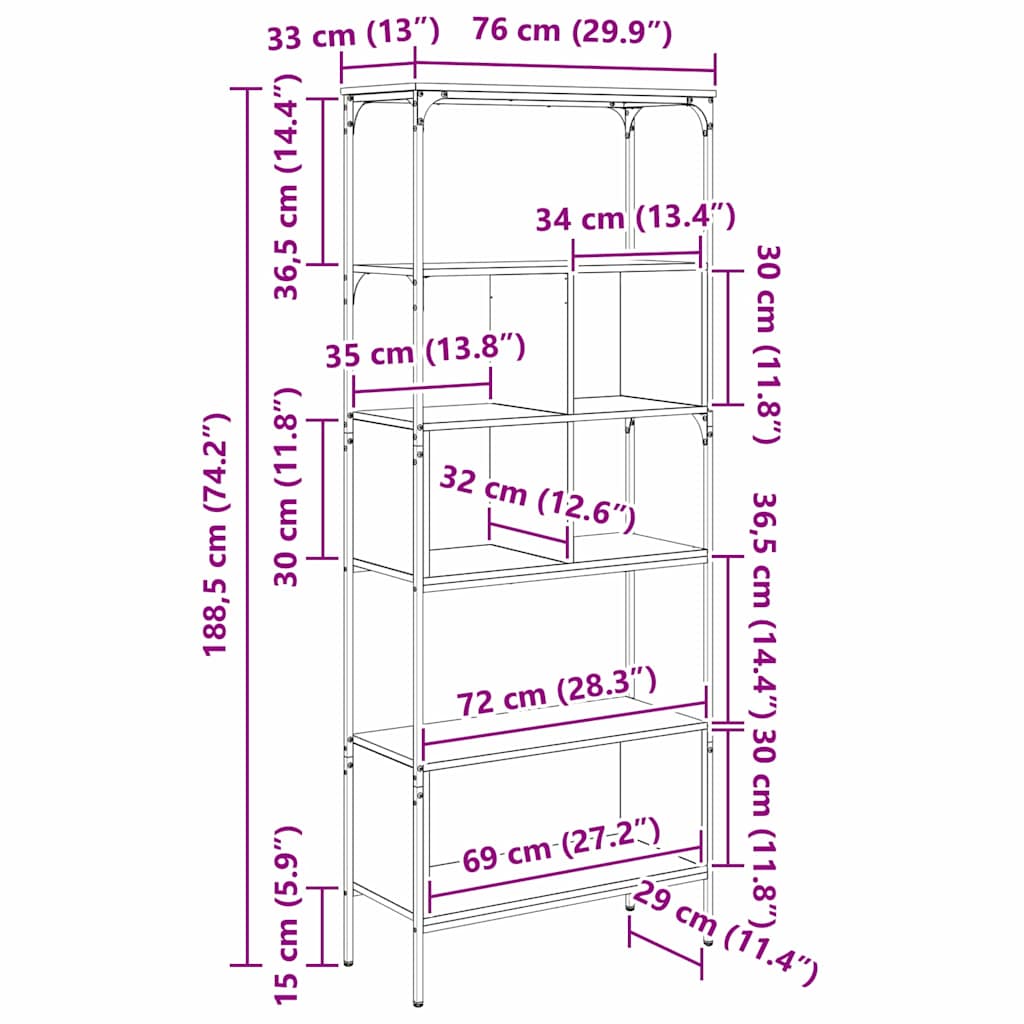 - Dimensiuni generale: 76 x 33 x 188,5 cm (l x ad. x î)