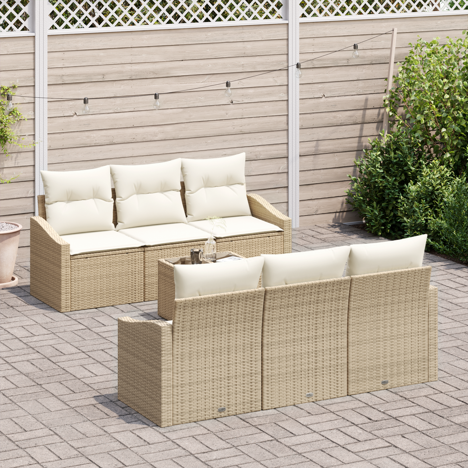 Setul ăsta fain de canapele de grădină cu 7 piese îți transformă zona exterioară într-un loc elegant, aducând confort și stil într-un singur pachet. Făcut din rattan natural rezistent, are perne moi și mese asortate, așa că e perfect pentru întâlniri sau seri relaxante sub cerul înstelat.