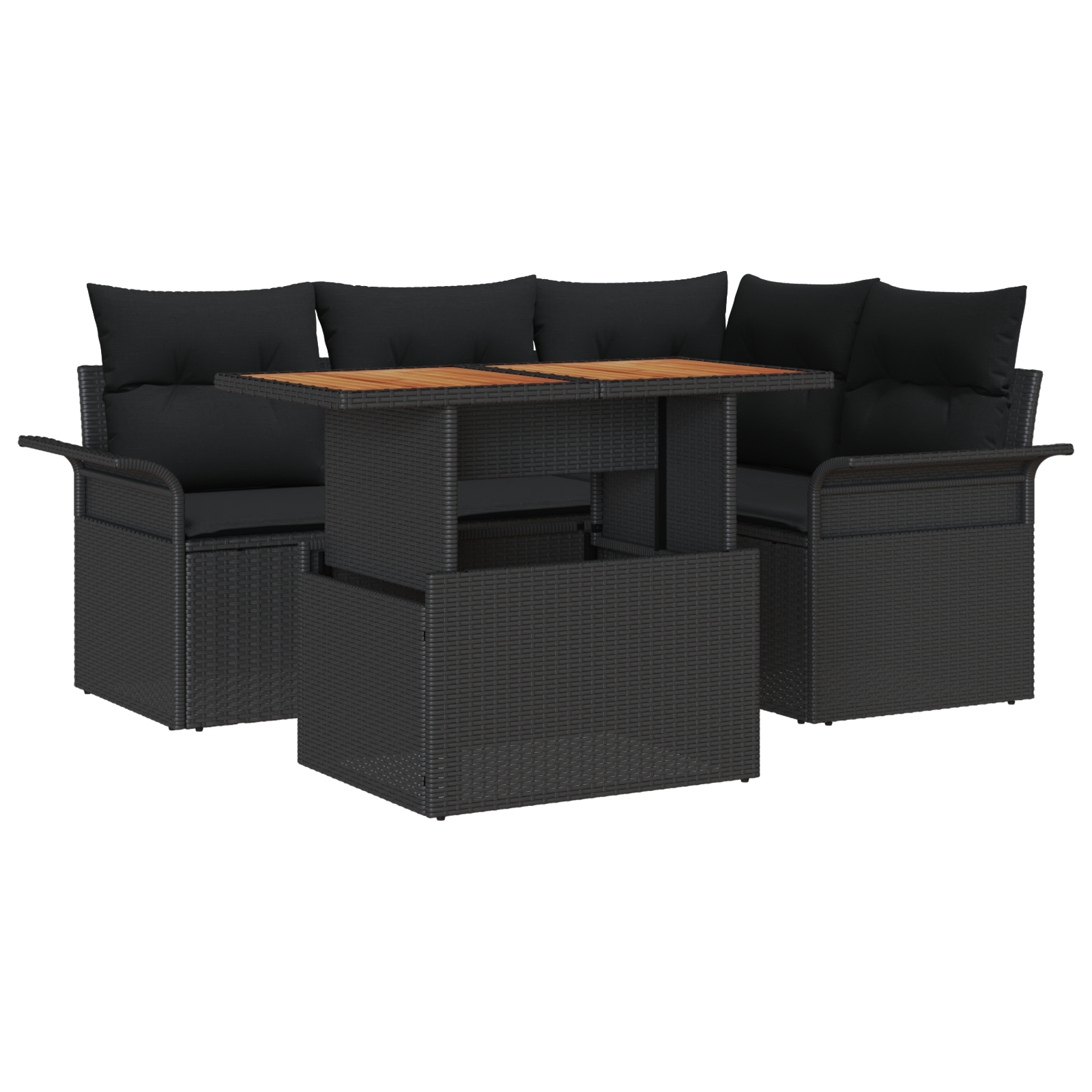 Setul ăsta de canapele cu 5 piese aduce confort și stil întâlnirilor tale în aer liber cu familia și prietenii. Aspectul său modern are linii curate și un finisaj elegant negru, așa că se potrivește ușor în grădini sau pe patio, fiind locul perfect pentru relaxare.