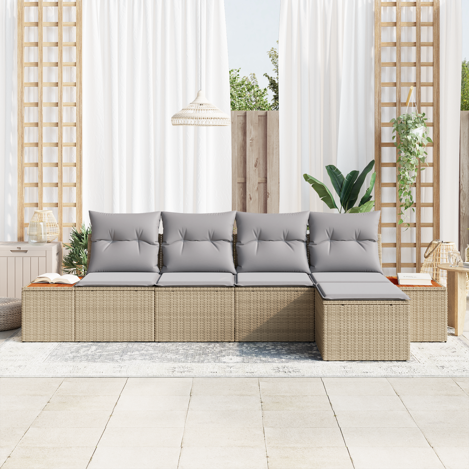 - Aspect chic: Culoarea bej și gri deschis, plus textura împletită manual, creează un look sofisticat care îmbunătățește orice spațiu exterior. Designul curat și modern va lăsa o impresie bună oaspeților și va crea un fundal elegant pentru orice activitate.