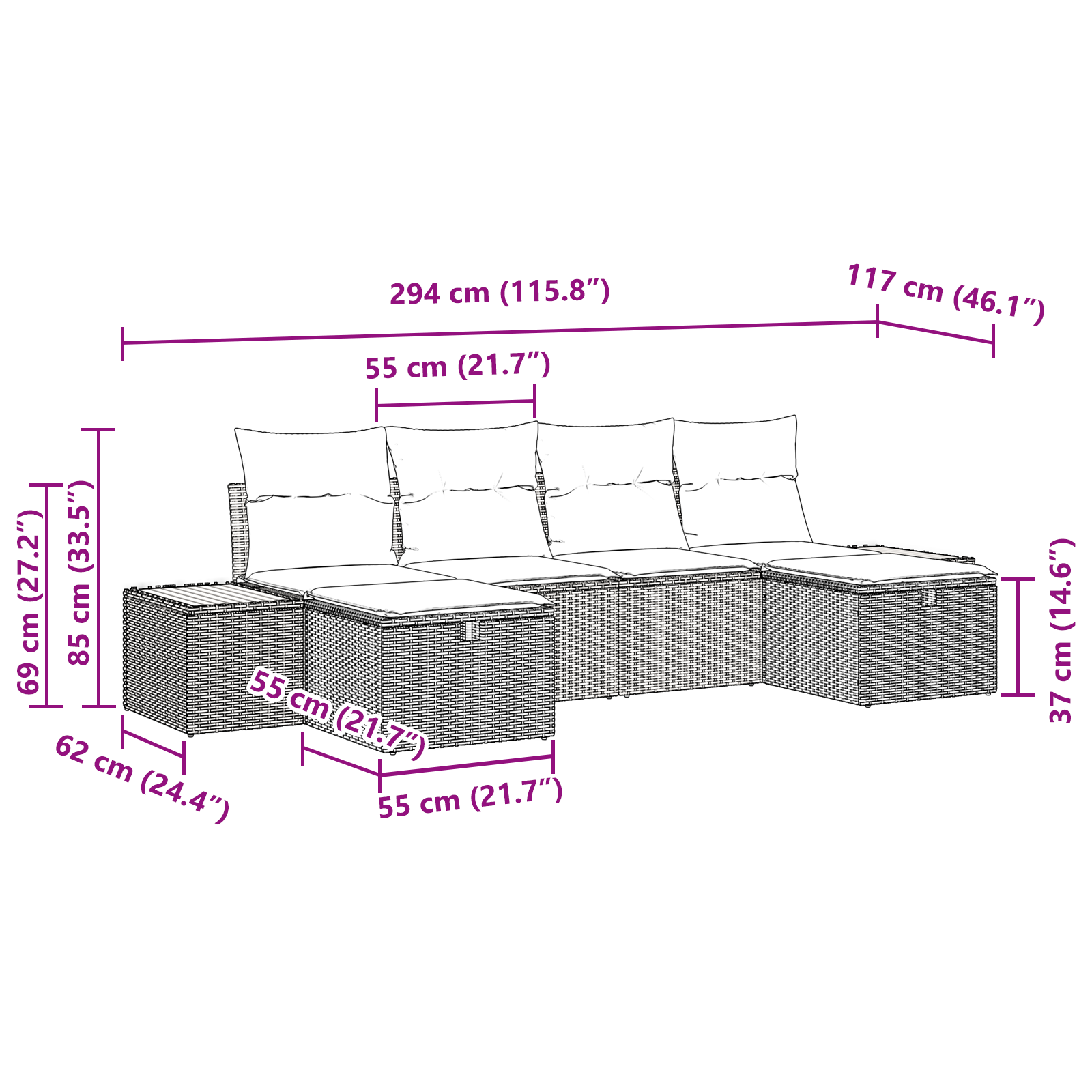 • Seat Depth: 60 cm