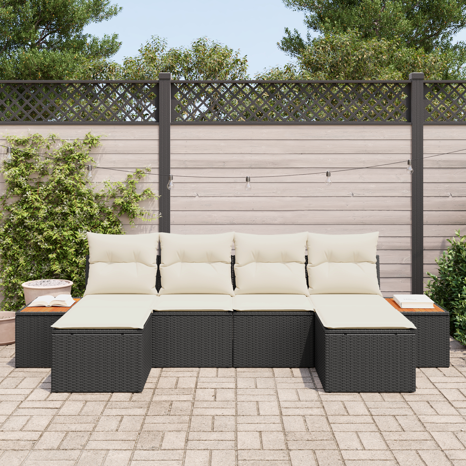 Setul de canapea cu 6 piese e făcut pentru stil și confort, ideal pentru relaxare și distracție afară. Datorită designului modular, poți aranja simplu piesele pentru a se potrivi spațiului și vibe-ului tău, creând un loc confortabil pentru întâlniri de familie sau un decor trendy pentru zilele însorite.