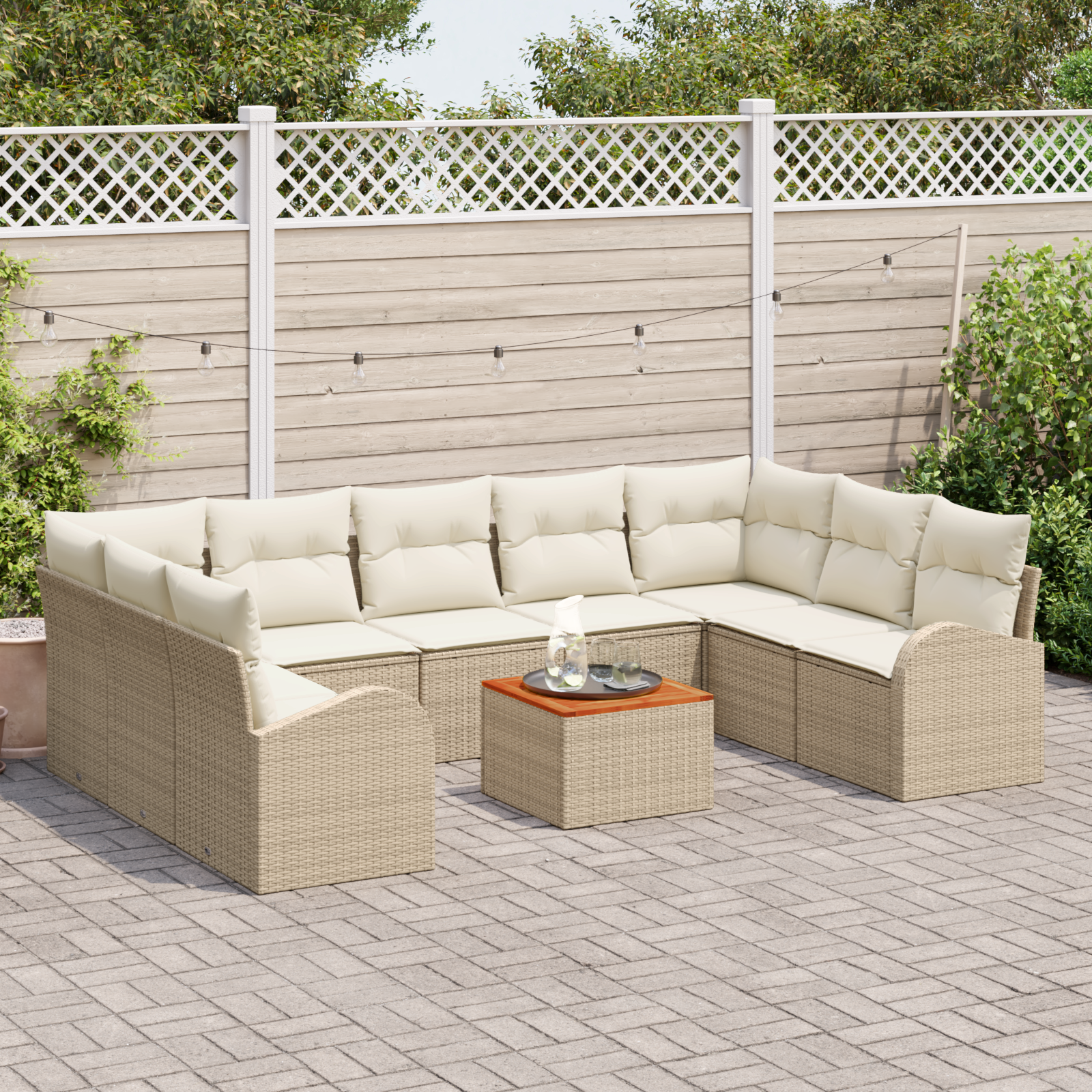 Set de canapele pentru grădină cu 10 piese și perne bej din ratan sintetic Acacia, Canapea pentru grădină cu 2 locuri și perne bej din ratan sintetic