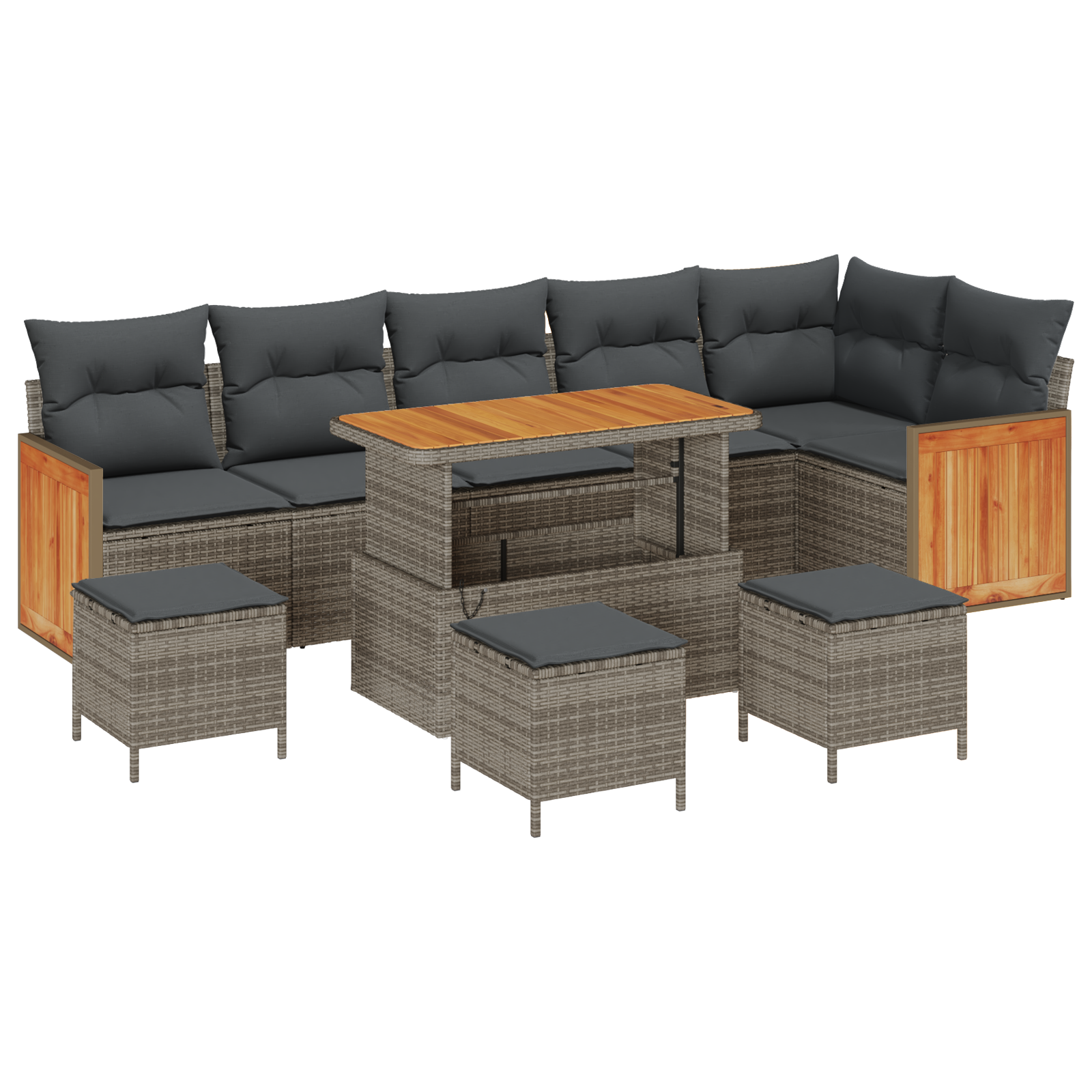 Set de canapele pentru grădină de 10 piese cu perne gri din ratan poli acacia