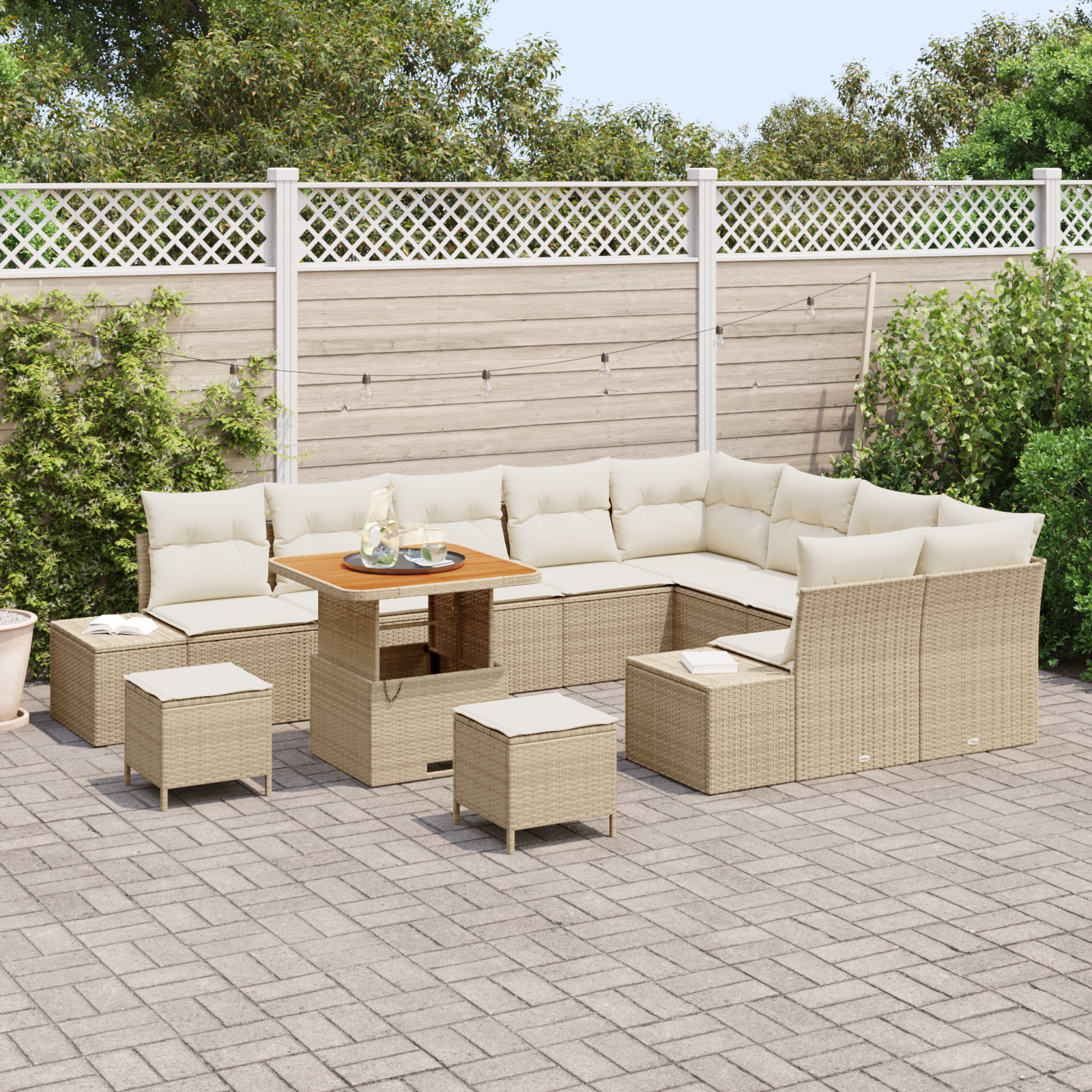 Set de Sofa pentru Grădină cu 12 Piese și Perne Bej Răchită Poliester Acacia, Set de Dining pentru Grădină cu 3 Piese și Perne Bej Răchită Poliester Acacia, Sofa pentru Grădină cu 2 Locuri și Perne