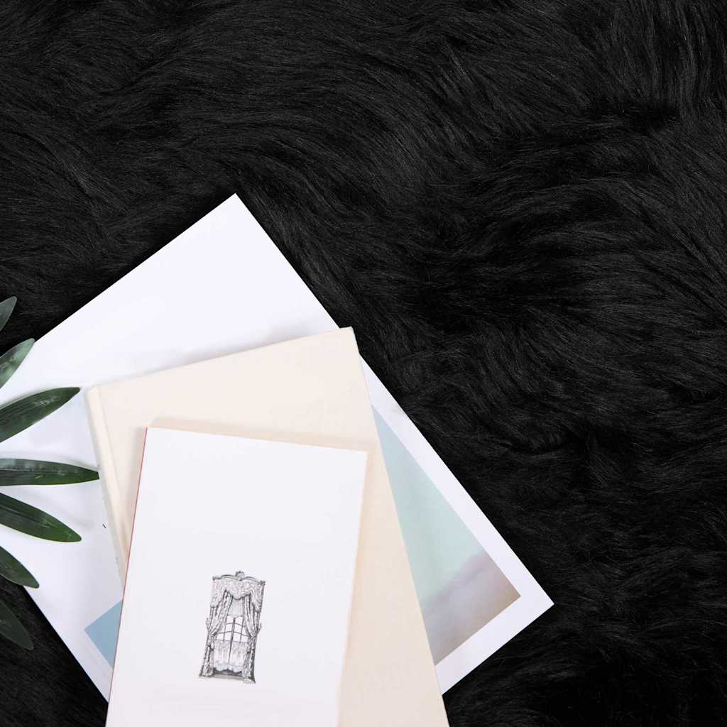 Covor Faux din Lână de oaie Negru 80 x 120 cm Poliester