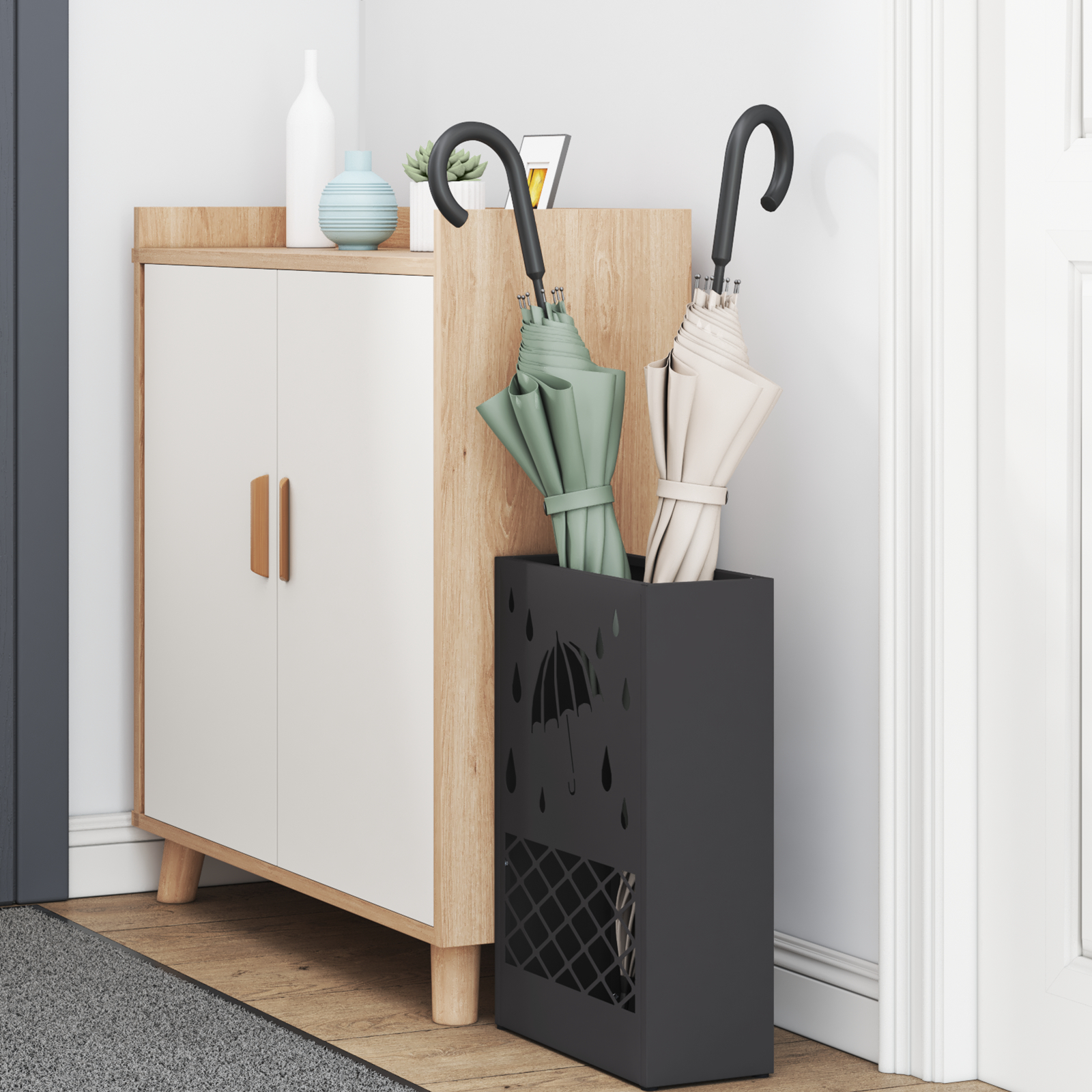 • Stocare mare: Suportul de umbrele are un design perforat pentru a le ține la îndemână, iar locul e suficient pentru tot.