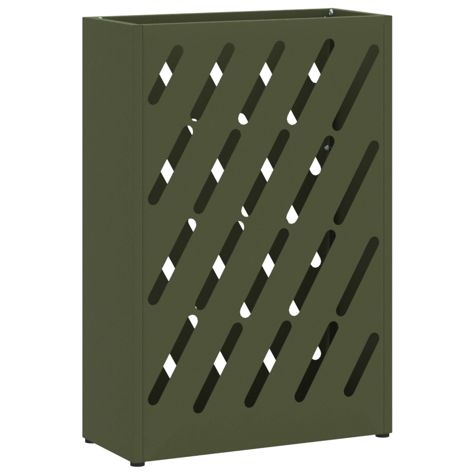 Suportul ăsta contemporan pentru umbrele e o soluție faină și practică pentru holul tău, asigurându-se că umbrelele ude sunt stocate frumos fără mizerie. Forma lui dreptunghiulară și finisajul metalic oliv se integrează bine în stiluri diferite, dându-ți un spațiu de depozitare util pentru tot felul de chestii.
