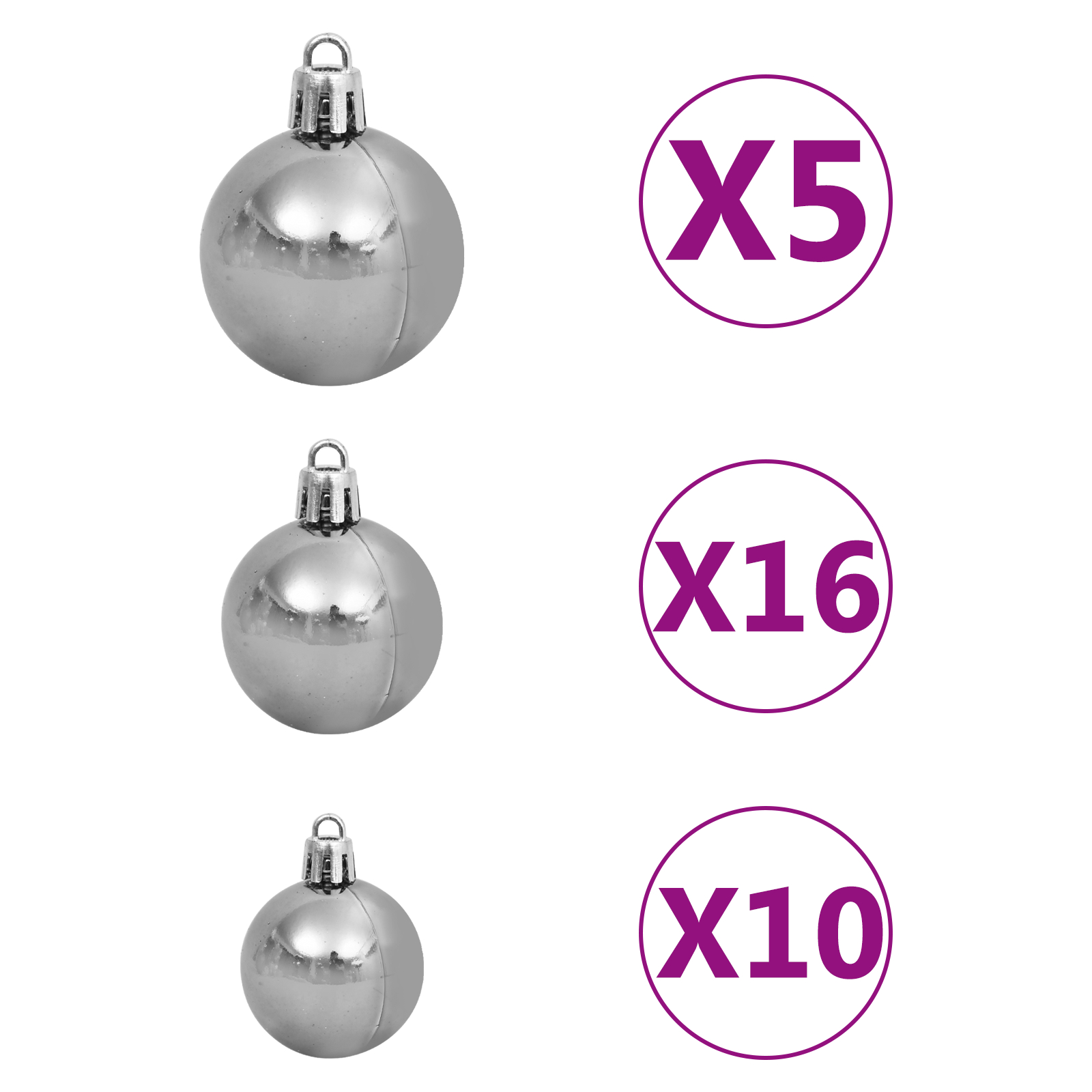 - Foliul verde superb, cu globuri trendy albe și gri, aduce un farmec aparte, făcând din acest brad un element central în orice cameră.