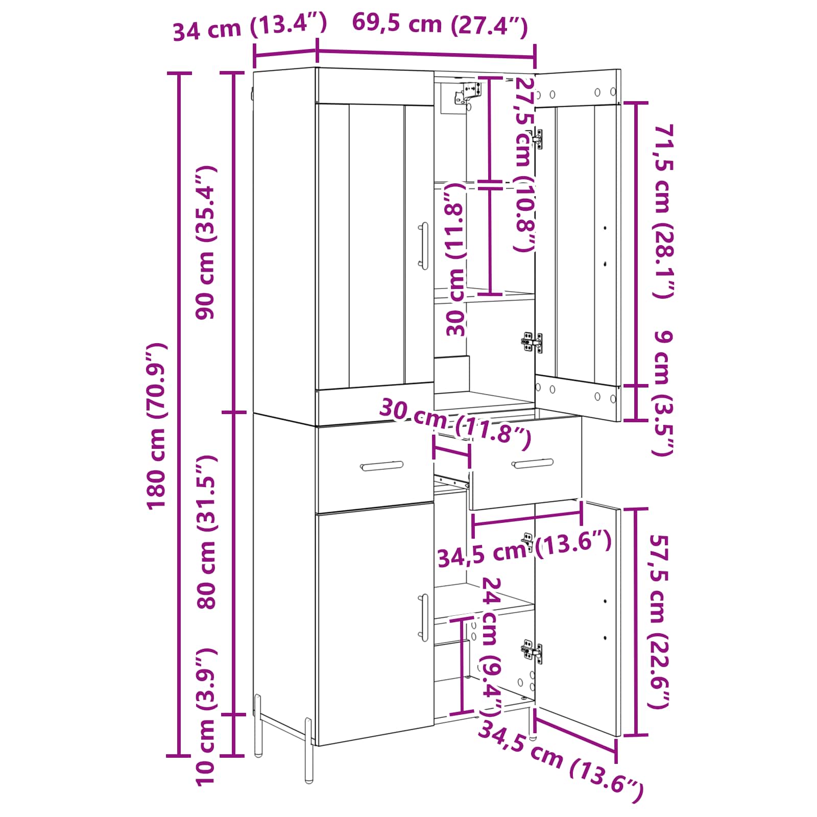 - Dimensiuni generale: 69,5 x 34 x 180 cm (L x l x î)