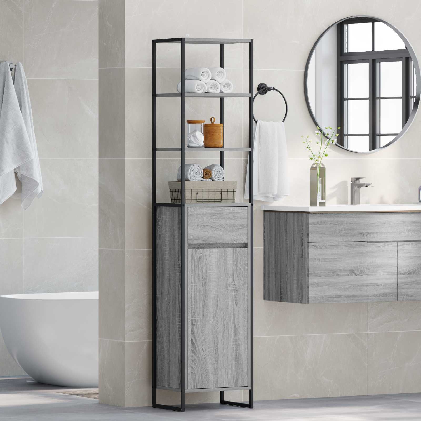 Dulap de Baie cu ușă Gri Sonoma 40 x 30 x 180 cm Lemn compozit