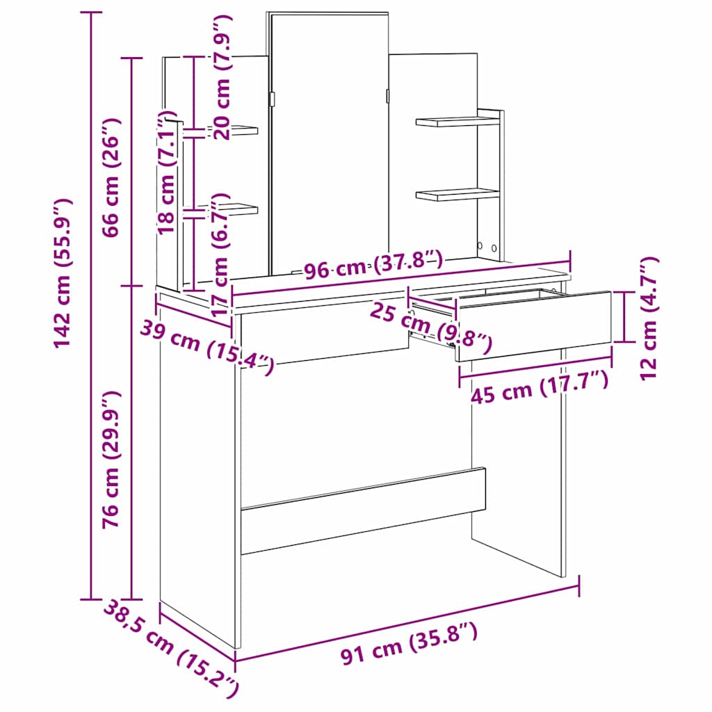 - Lemn prelucrat neted: Masa de toaletă e fabricată din lemn de calitate superioară, cu un finish neted. Curățarea e simplă, iar stilul ei se potrivește cu ușurință în orice decor. Materialul asigură stabilitate și durabilitate, rămânând accesibil pentru casele de zi cu zi.
