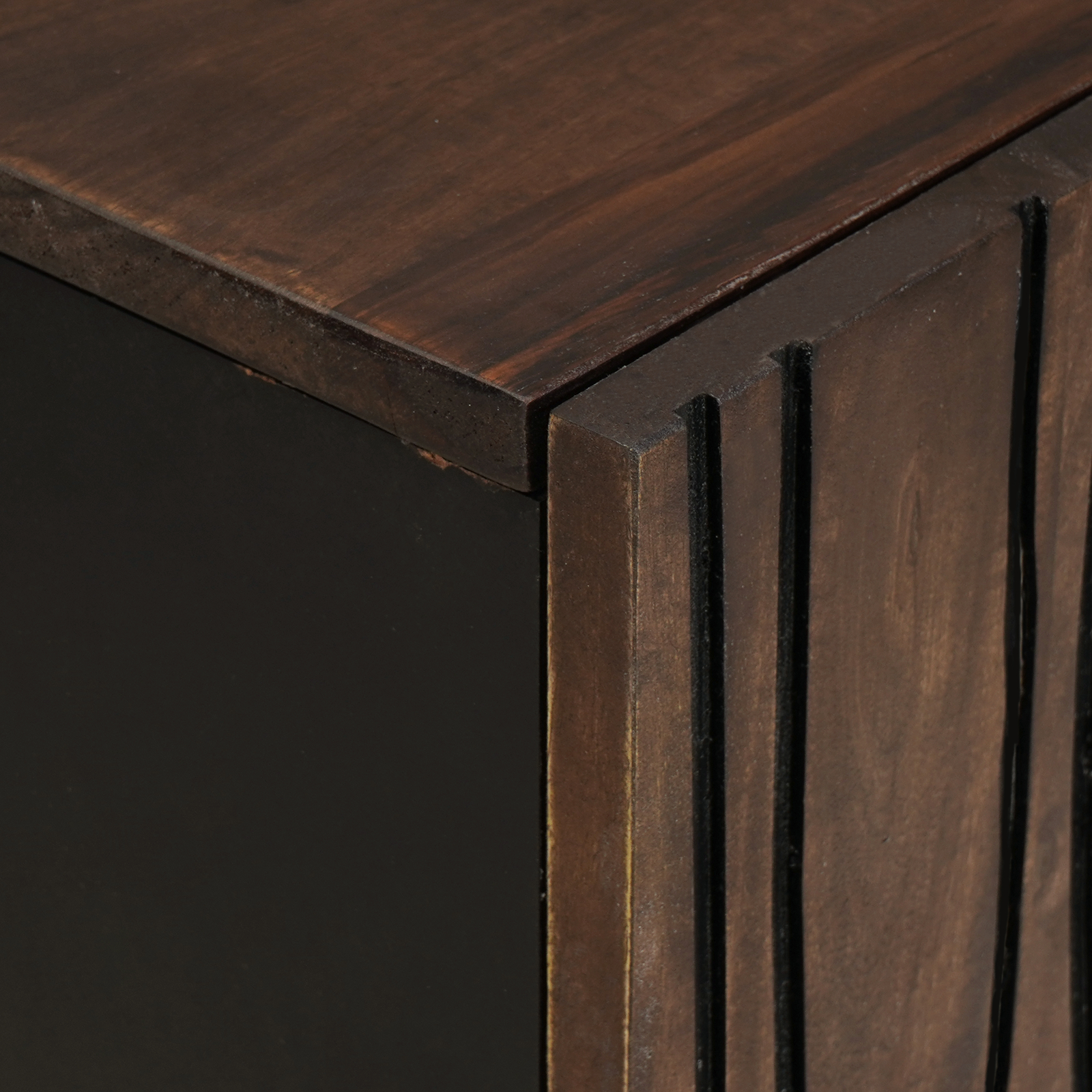 Acest cabinet de stocare media are un design modern și combină forma cu funcția cu ușurință, aducând o atmosferă plăcută în camera ta. Fabricat din lemn masiv de nuc cu detalii metalice subtile, nu e doar o soluție practică de stocare, ci și un element stilat, perfect pentru a-ți organiza colecția media și a îmbunătăți vibe-ul din living.