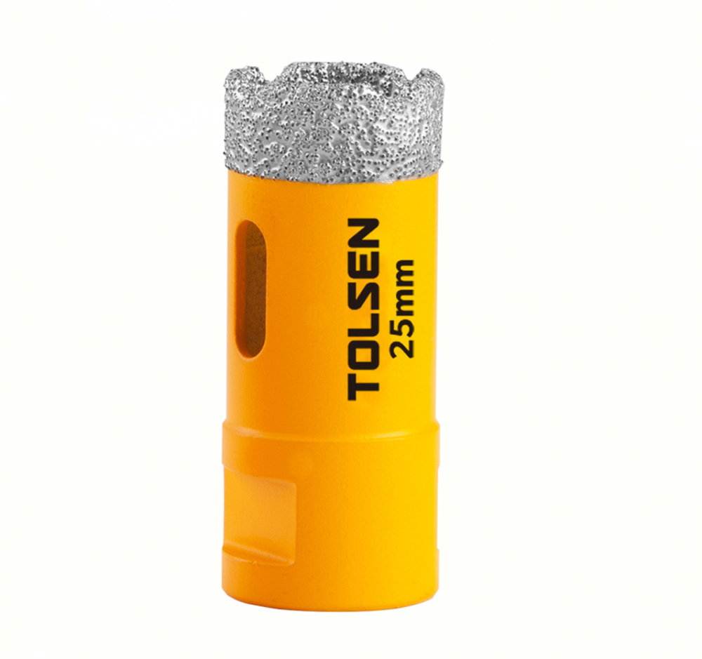 Carotă Diamantată pentru Sticlă, Ceramică și Marmură, Diametru 25 mm, M14, Lungime 63 mm, Industrial, TOLSENDescriere produs:Carota diamantată TOLSEN este un instrument de înaltă performanță, proiectat special pentru găurirea precisă în materiale dure precum sticla, ceramica și marmura. Cu un diametru de 25 mm și o adâncime de foraj de 35 mm, acest produs este ideal pentru utilizări industriale și profesionale.Specificații tehnice: Diametru: 25 mm Material corp: Oțel carbon #45 Lungime totală: 63 mm Adâncimea de foraj: 35 mm Filet: M14 Suprafață: Vopsită cu pulbere Ambalaj: Husă PVC cu etichetă coloratăCaracteristici și beneficii: Diamant industrial: Permite găurirea rapidă și precisă în materiale dure. Corp din oțel carbon #45: Oferă rezistență și durabilitate în utilizarea intensă. Design practic: Filetul M14 este compatibil cu o gamă largă de unelte, facilitând instalarea rapidă. Adâncime de foraj optimă: 35 mm, ideală pentru diverse aplicații industriale.Utilizare recomandată:Carota diamantată TOLSEN este potrivită pentru realizarea găurilor precise în sticlă, ceramică și marmură, fiind ideală pentru lucrări de finisare în construcții, amenajări interioare sau alte aplicații industriale.Atenționări: Utilizați întotdeauna carota cu echipament de protecție adecvat pentru a preveni accidentele. Răciți frecvent carota în timpul utilizării pentru a prelungi durata de viață a produsului. Verificați compatibilitatea cu unealta înainte de utilizare.
