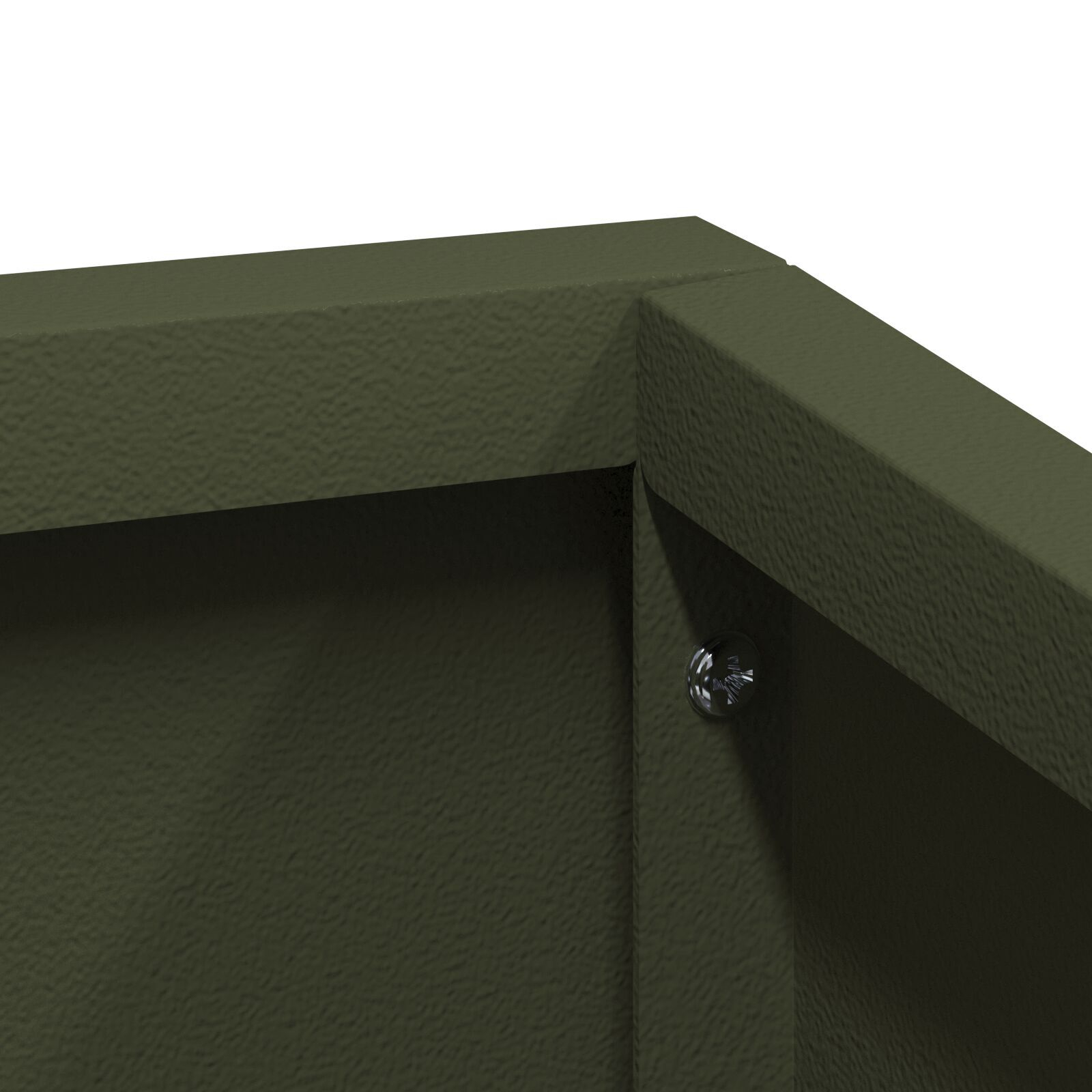 Acest ghiveci din metal aduce funcționalitate și un look modern, fiind perfect pentru spațiile interioare sau exterioare. Designul său dreptunghiular și construcția din metal verde măsliniu sunt super trendy, oferind plantelor tale un loc fain și îmbunătățind decorul.
