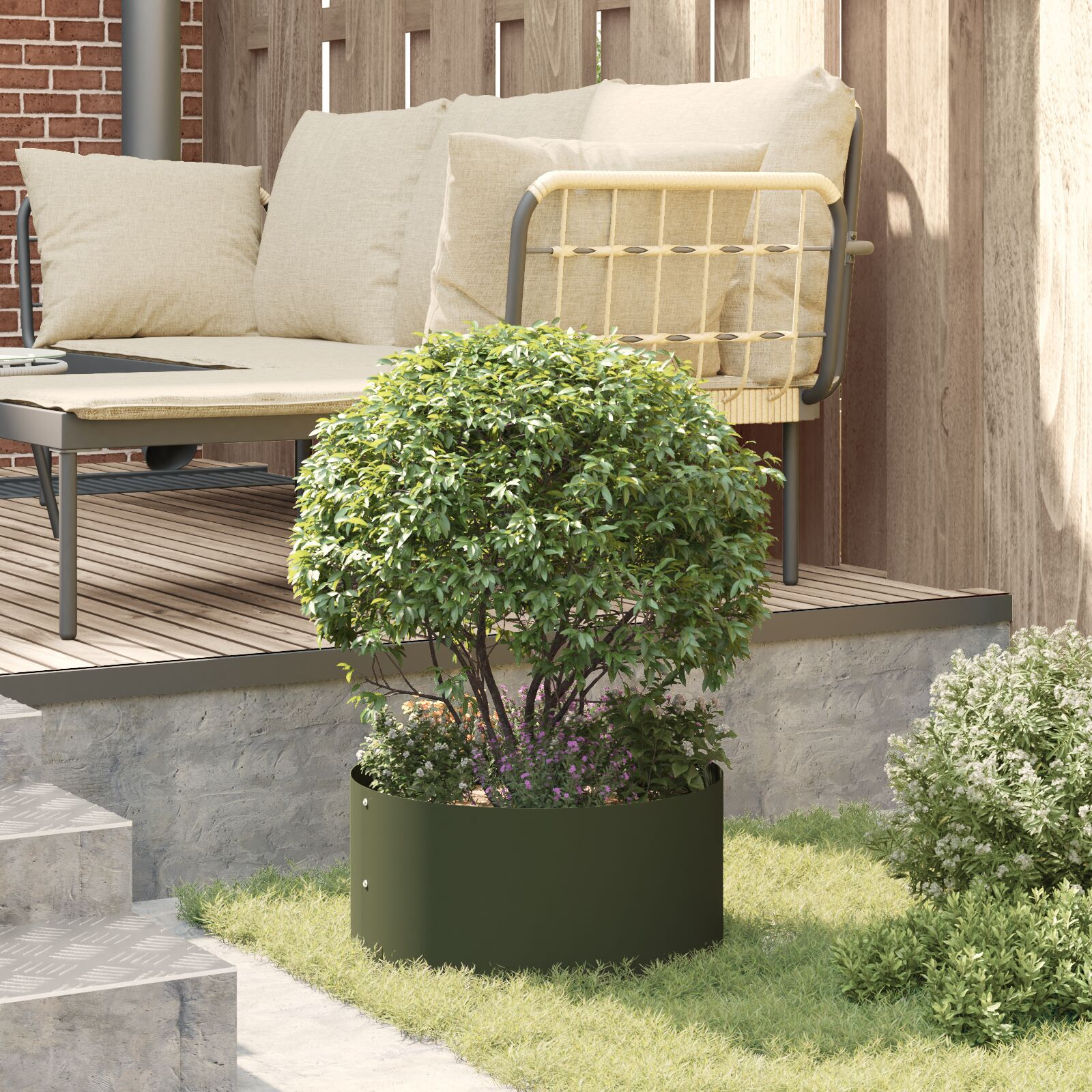 Acest ghiveci de plastic verde oliv combină stilul cu funcționalitatea. Forma cilindrică minimalistă se potrivește cu multe stiluri și scoate în evidență plantele, făcând spațiile interioare și exterioare mai atrăgătoare.