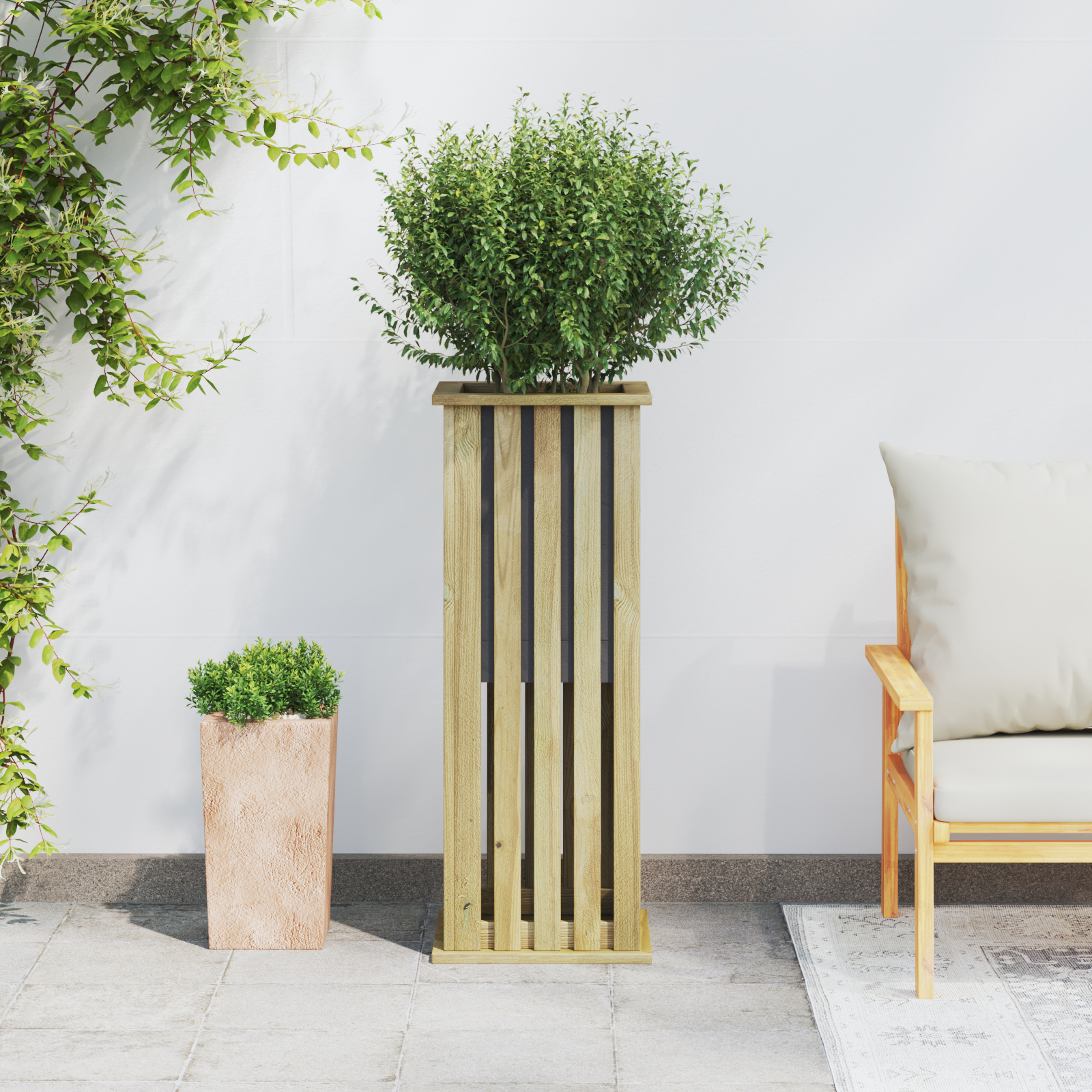 Vaza de grădină asta e un mix fain de stil și utilitate, îmbunătățind fără efort orice zonă interioară sau exterioară. Aspectul rustic, împreună cu finisajul din lemn natural, face să fie o alegere elegantă care își pune în valoare plantele și florile.