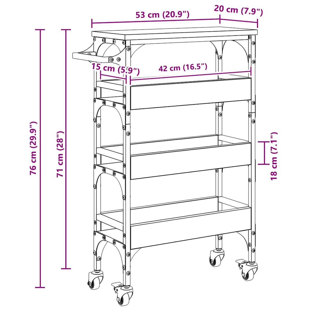 Troler de Bucătărie Stejar Artizanal 53 x 20 x 76 cm