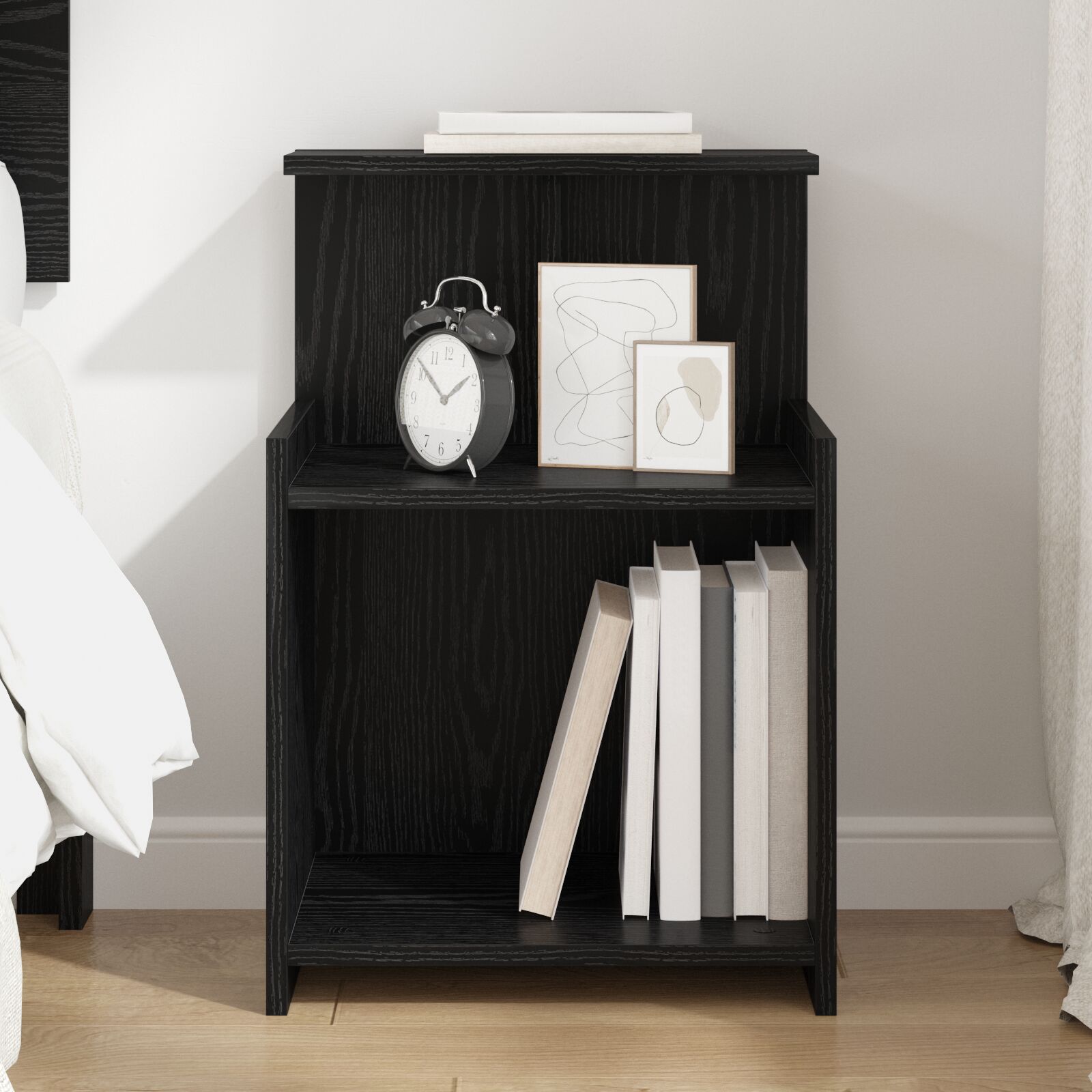Acest cabinet de pat are un stil minimalist care face dormitorul tău să arate mai bine, gândit pentru viața modernă. E dimensiunea perfectă pentru spații mai mici, îmbinând utilitatea cu un finisaj elegant din stejar negru, astfel încât camera ta să fie călduroasă și primitoare.