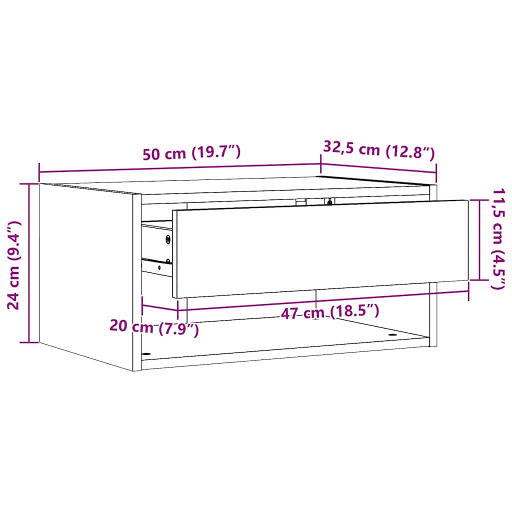 Noptieră Montată pe Perete 2 pcs Maro ceruit 50 x 32.5 x 24 cm