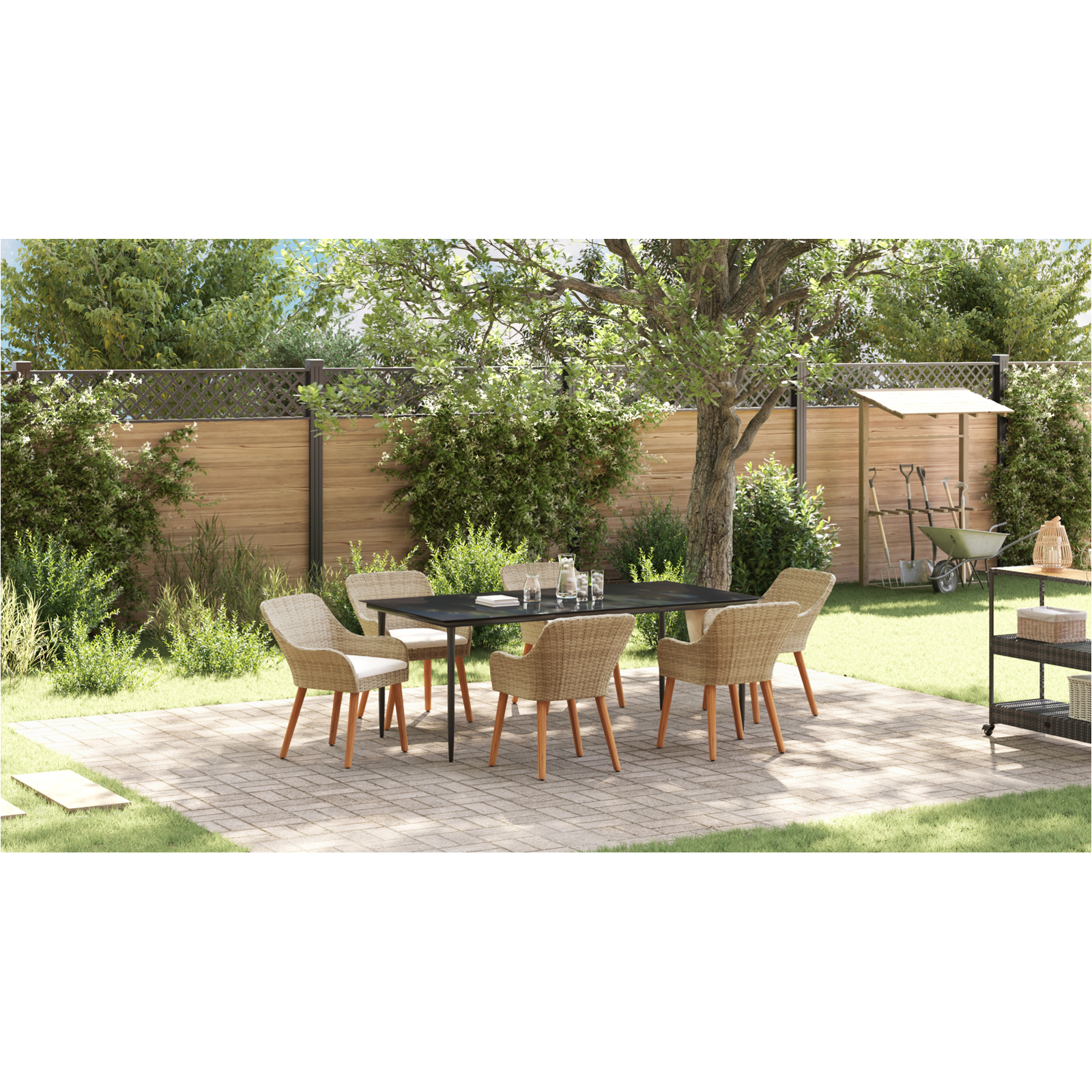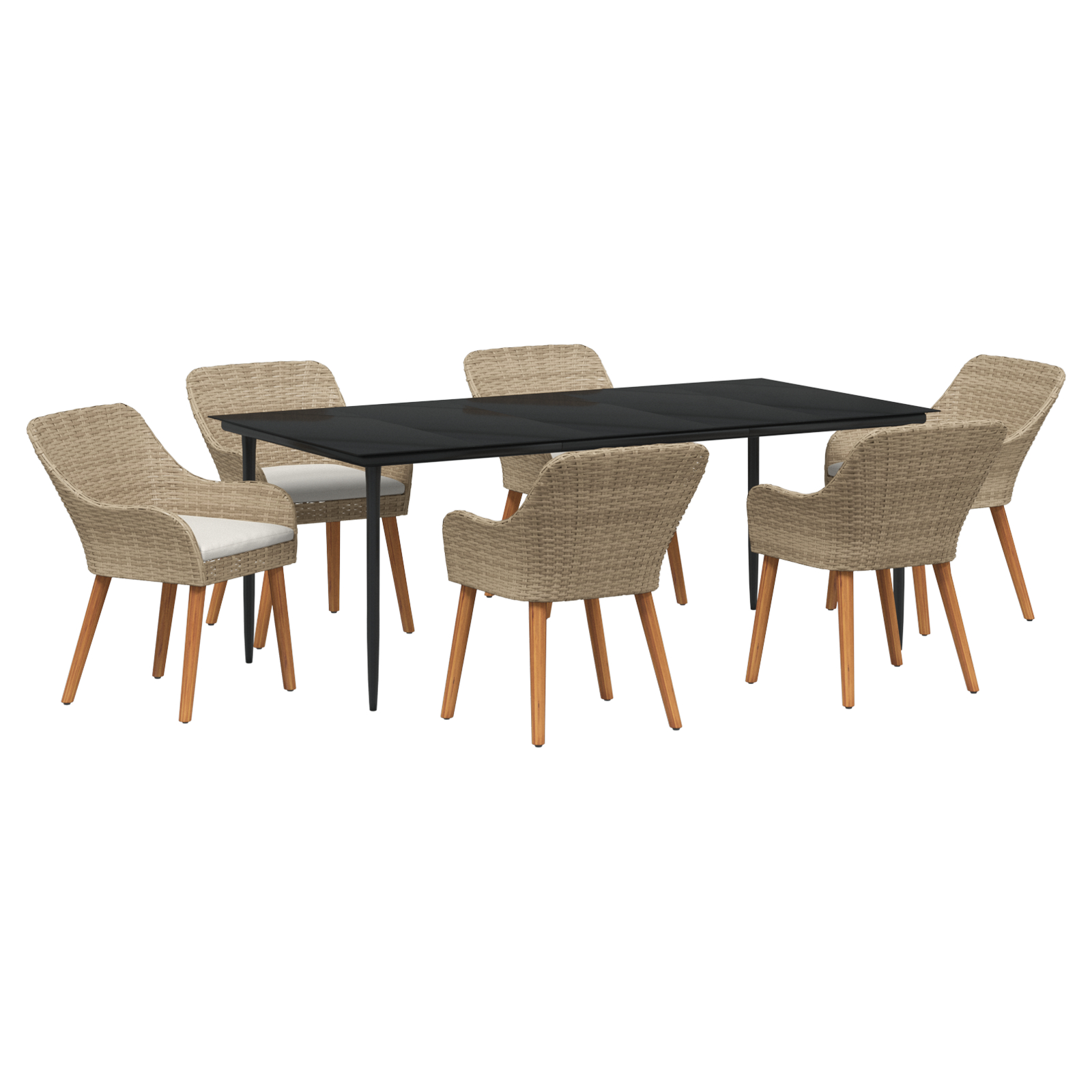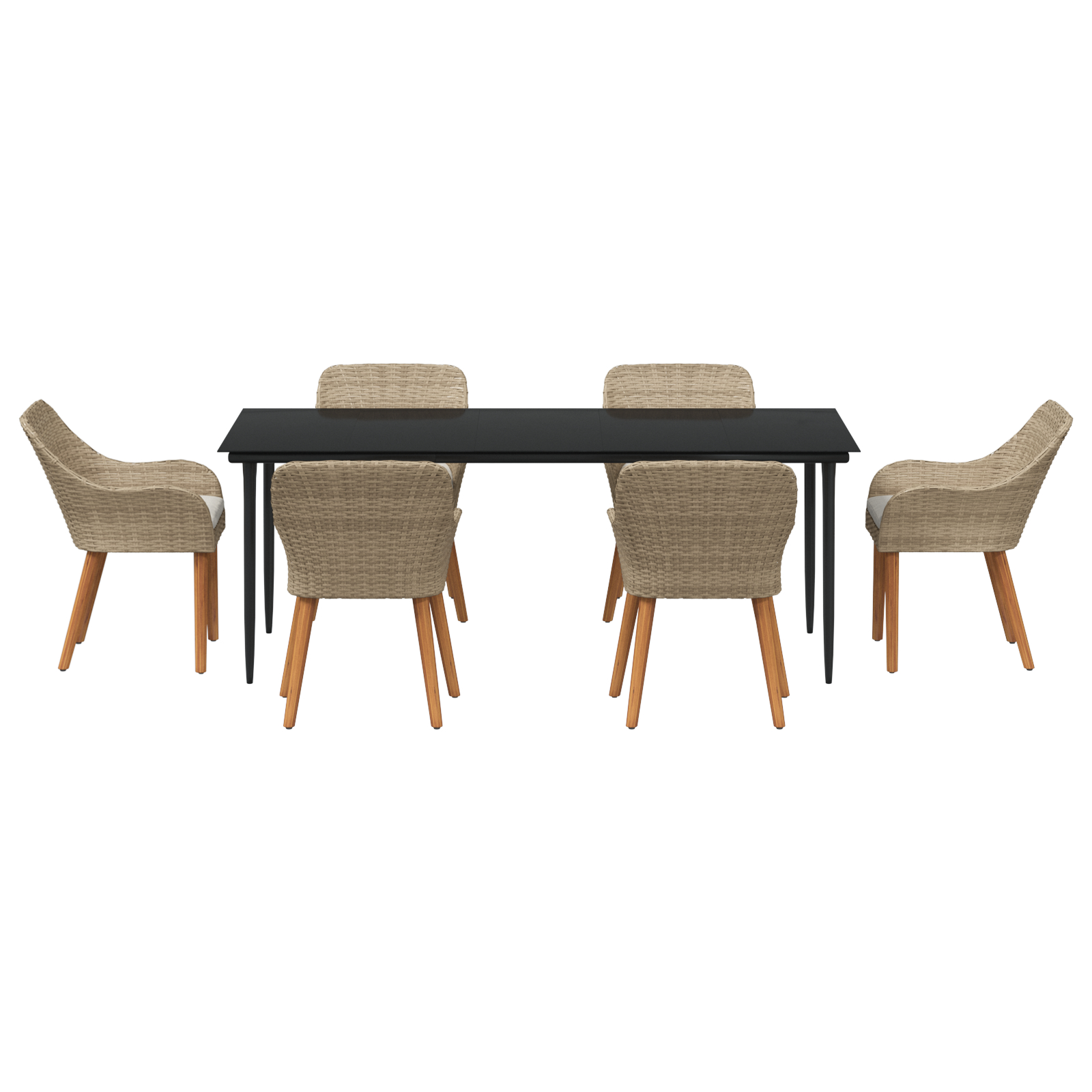 Setul acesta stylish pentru terasă îmbină un stil modern cu un design practic. E perfect pentru mese și distracții în aer liber, având o masă dreptunghiulară și șase scaune ce transformă grădina sau terasa ta într-un loc super pentru familia și prietenii tăi să se adune și să se bucure de mese împreună.