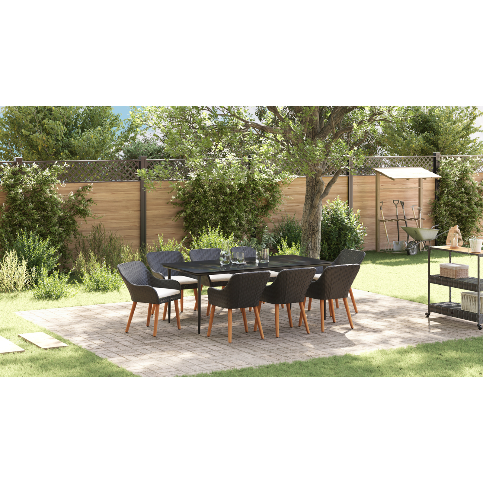 Îmbunătățește-ți mesele în aer liber cu setul ăsta generos de 9 piese! Are o masă dreptunghiulară modernă și patru scaune confortabile. Ideal pentru întâlniri pe terasă sau balcon, bucură-te de mese cu stil și confort.