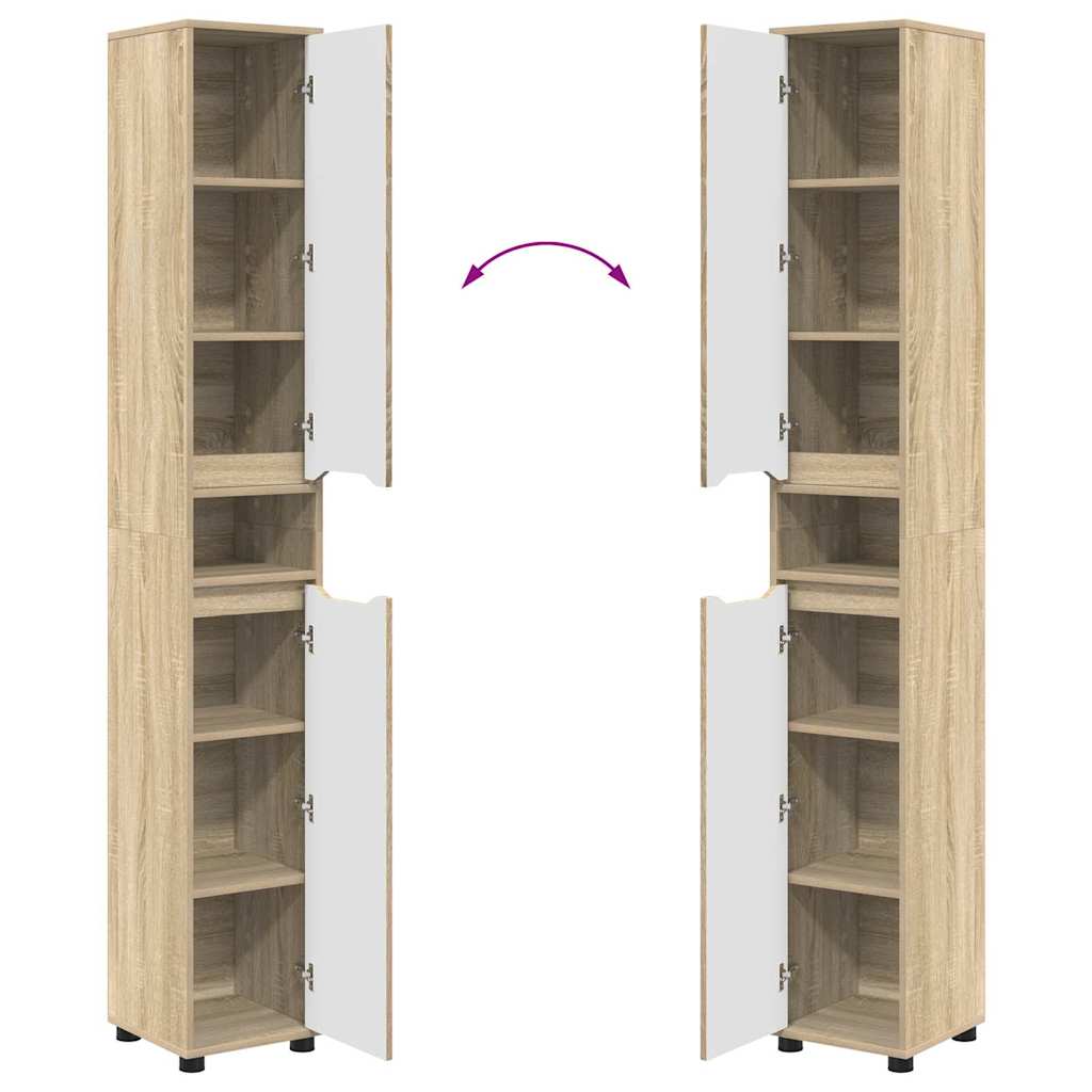 - Materiale de înaltă calitate Dulapul e realizat majoritar din lemn prelucrat, oferind rezistență și durabilitate - esențial în baie. Lemnul neted completează senzația modernă a piesei.