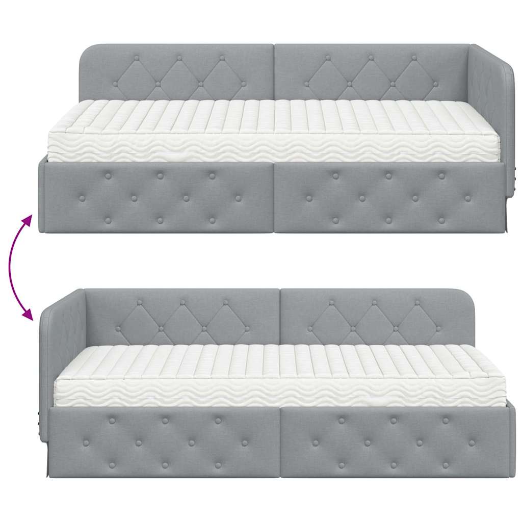 Acest cadru de pat colțar din țesătură are un design modern și se integrează ușor în colțul dormitorului tău, economisind spațiu și oferind un aspect fresh. Poate fi folosit atât ca pat de zi confortabil, cât și ca loc de dormit comod. Designul său simplu se potrivește perfect în apartamente urbane sau interioare minimaliste, o alegere excelentă pentru maximizarea spațiului, fără să renunți la stil.