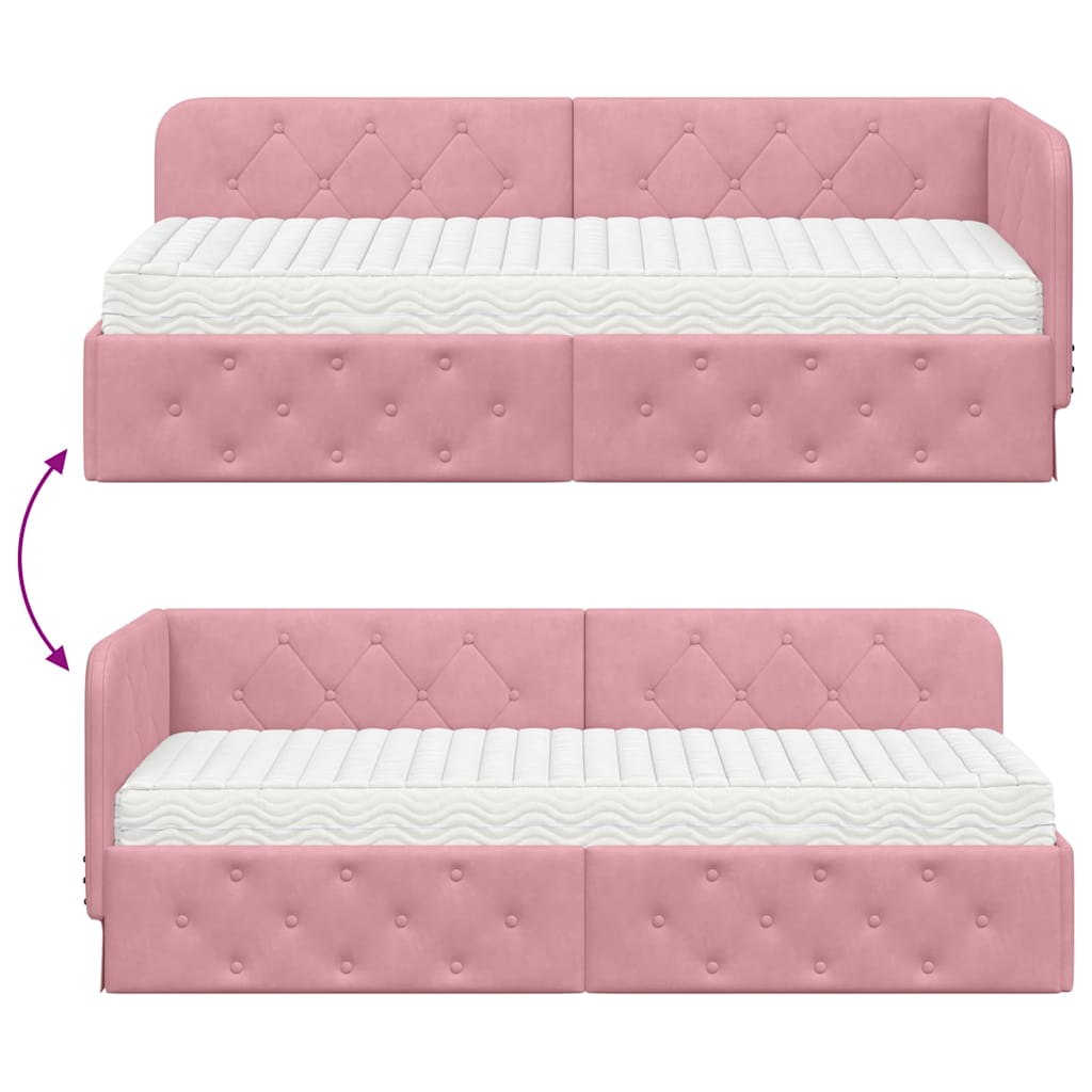 Cadru de pat colțar cu saltea Roz 80 x 200 cm Catifea