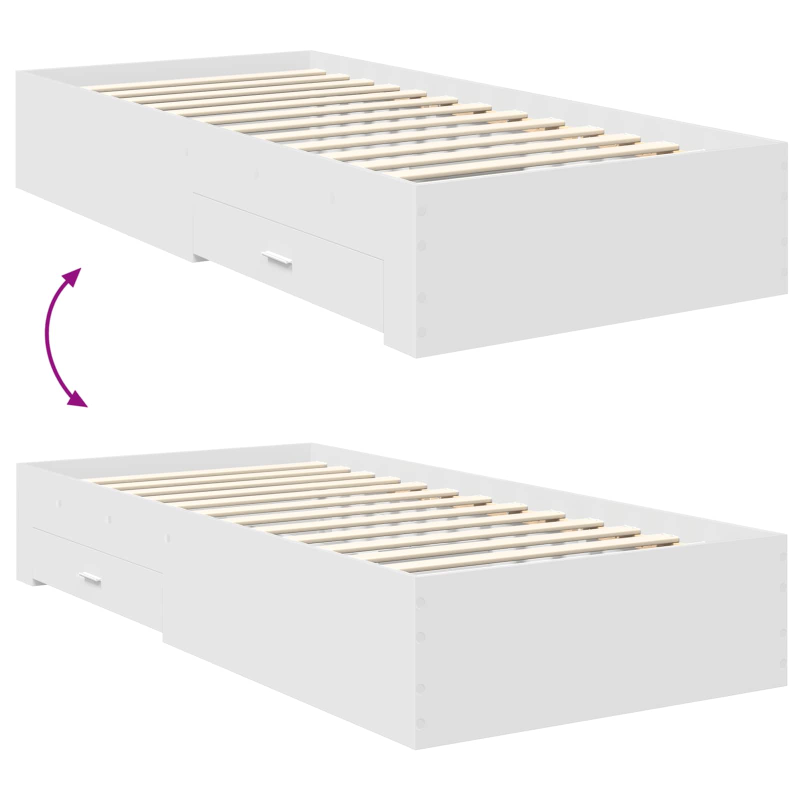 - Componente Incluse: Cadrul include o tăblie din lemn prelucrat și un cadru de platformă cu șipci, pentru suport uniform. Această combinație oferă stabilitate excelentă a saltelei, sporind confortul și calitatea somnului. Sertarele tradiționale cu mânere oferă soluții practice pentru a menține ordinea în dormitor.