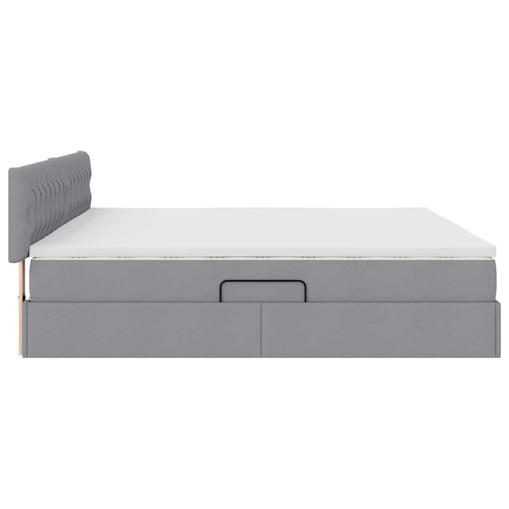 Pat cu saltea și spațiu de depozitare Gri deschis 200 x 200 cm