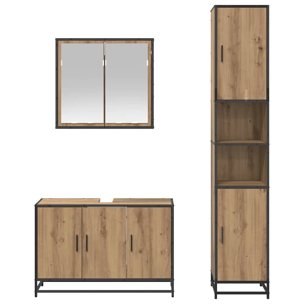 - caracteristici funcționale: Setul viene cu un dulap cu oglindă, un dulap pentru chiuvetă cu uși încastrate și un dulap de depozitare cu bare. Fiecare piesă e gândită să te ajute să rămâi organizat. Oglinda e perfectă pentru rutina zilnică, iar dulapurile îți oferă mult spațiu pentru toate chestiile din baie, păstrand totul aranjat.