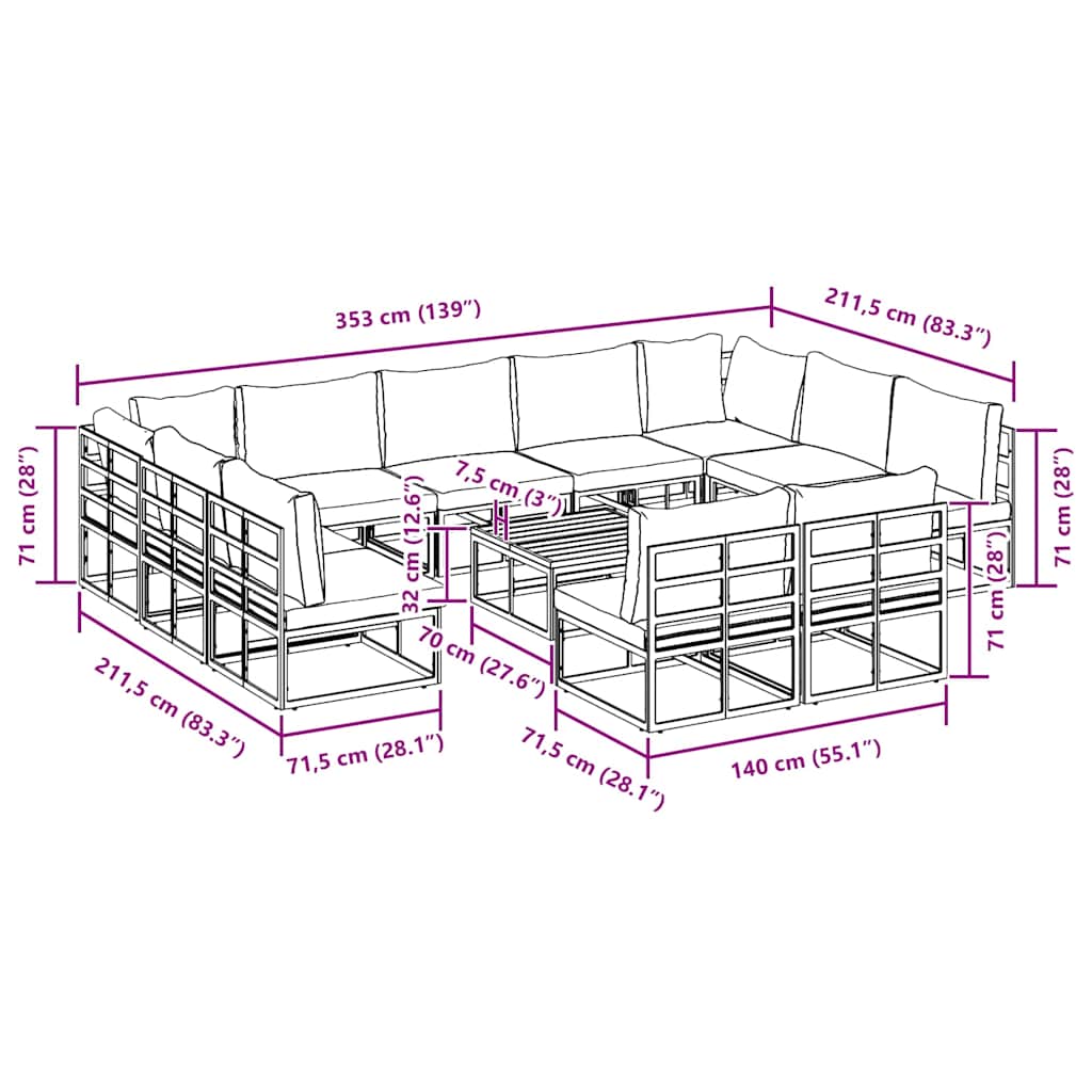 - Conținutul livrării: 2 x loc de colț, 9 x loc de centru, 1 x masă de grădină<\li>
