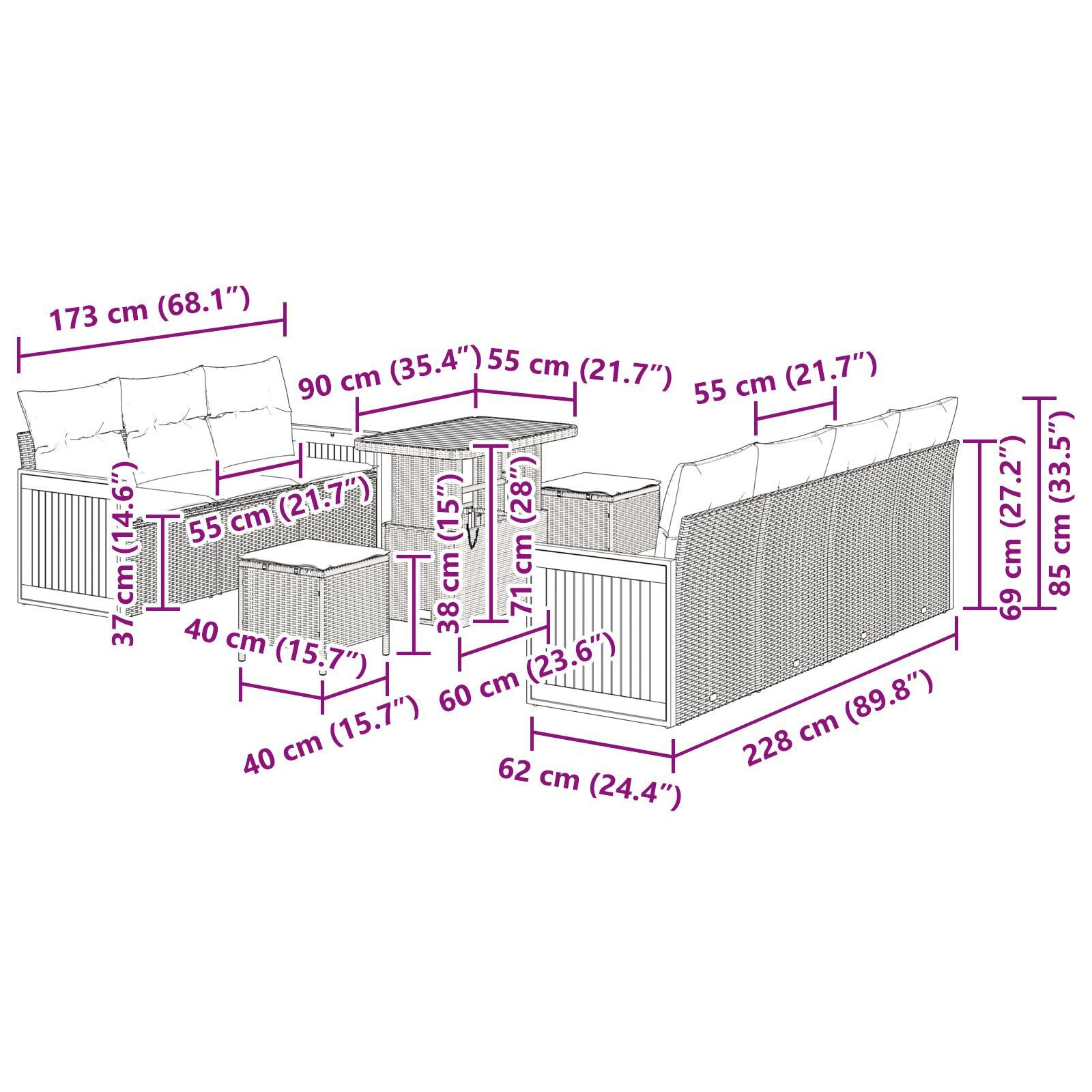 Setul ăsta de canapele pentru grădină îmbină stilul cu funcționalitatea și îmbunătățește atmosfera ta în aer liber. Cu design modern, din poliratan și lemn natural, e locul perfect pentru a petrece timp sau a te relaxa cu stil.