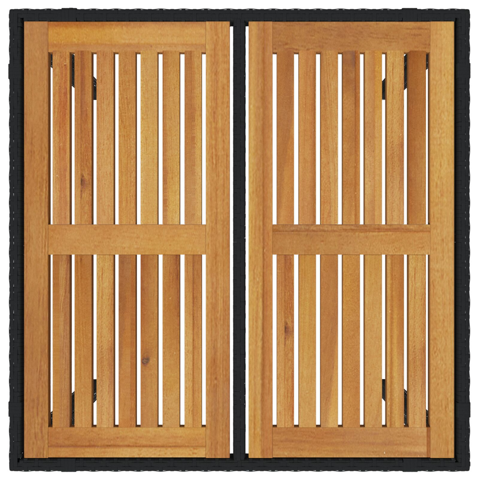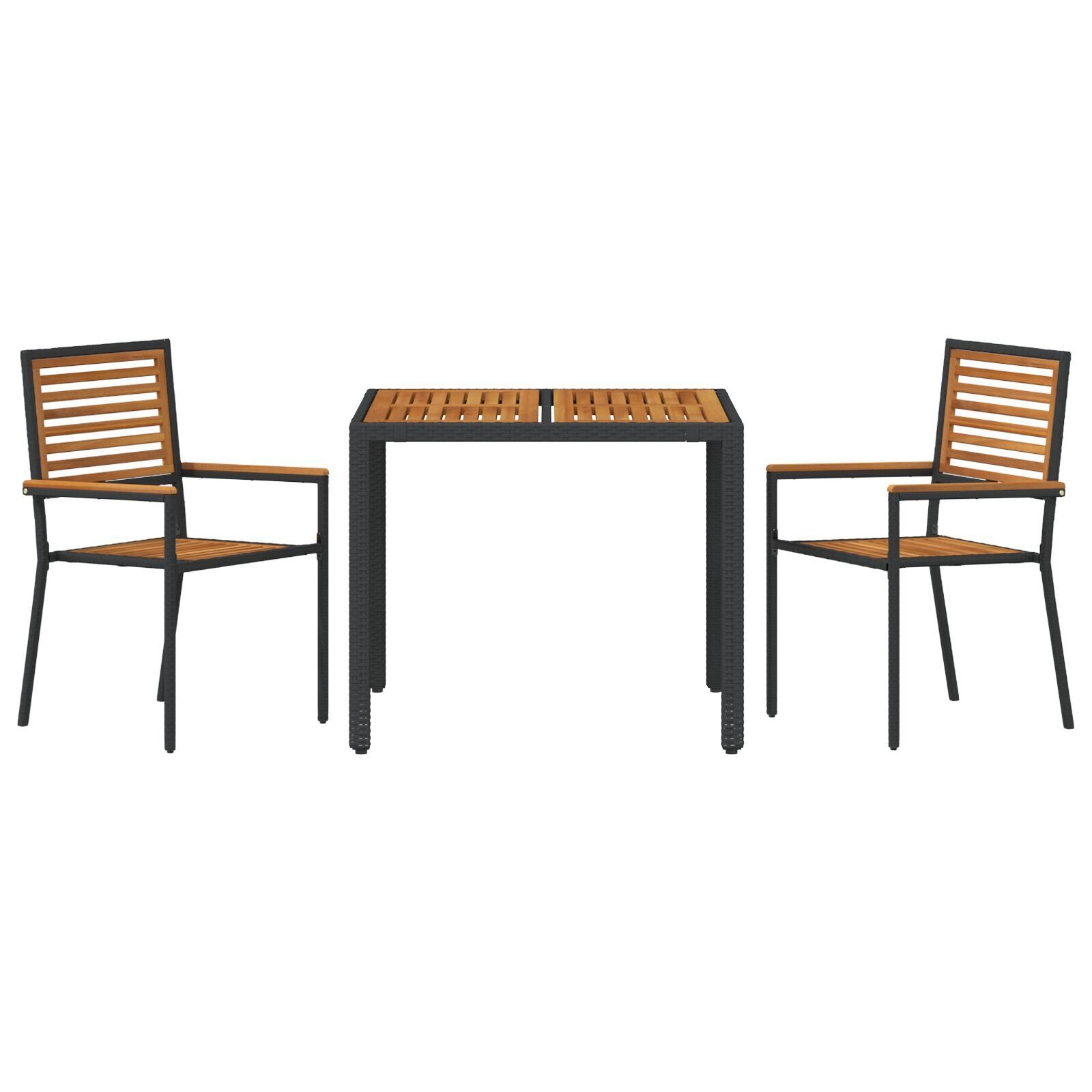 Setul ăsta fain de masă pentru grădină îmbină un design modern cu un cadru elegant din oțel negru și accente calde din lemn. E perfect pentru balcoane și patio-uri, are o masă pentru 2 persoane și două scaune asortate, super pentru mese sau întâlniri relaxate cu familia și prietenii.