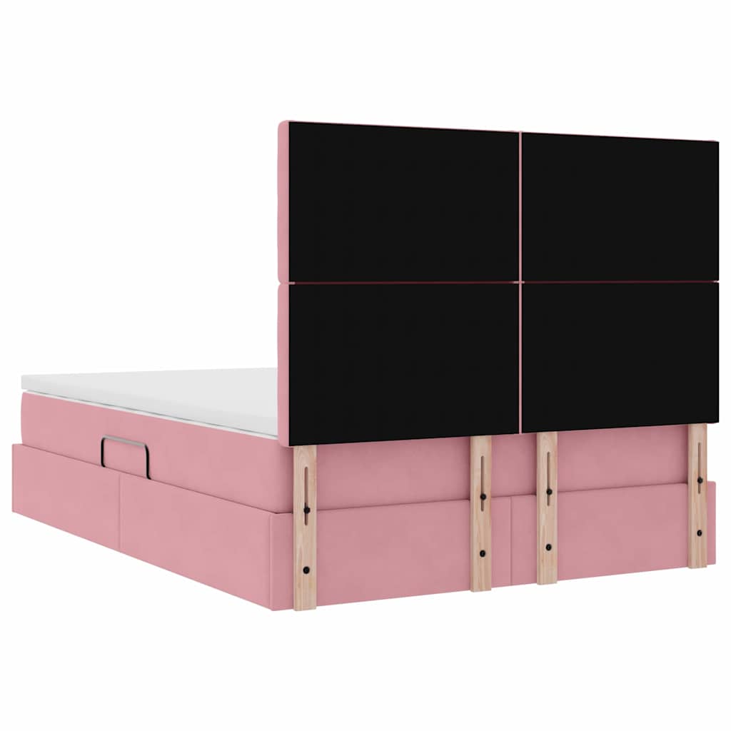 Pat cu lumini cu bandă LED Roz 140 x 190 cm Catifea