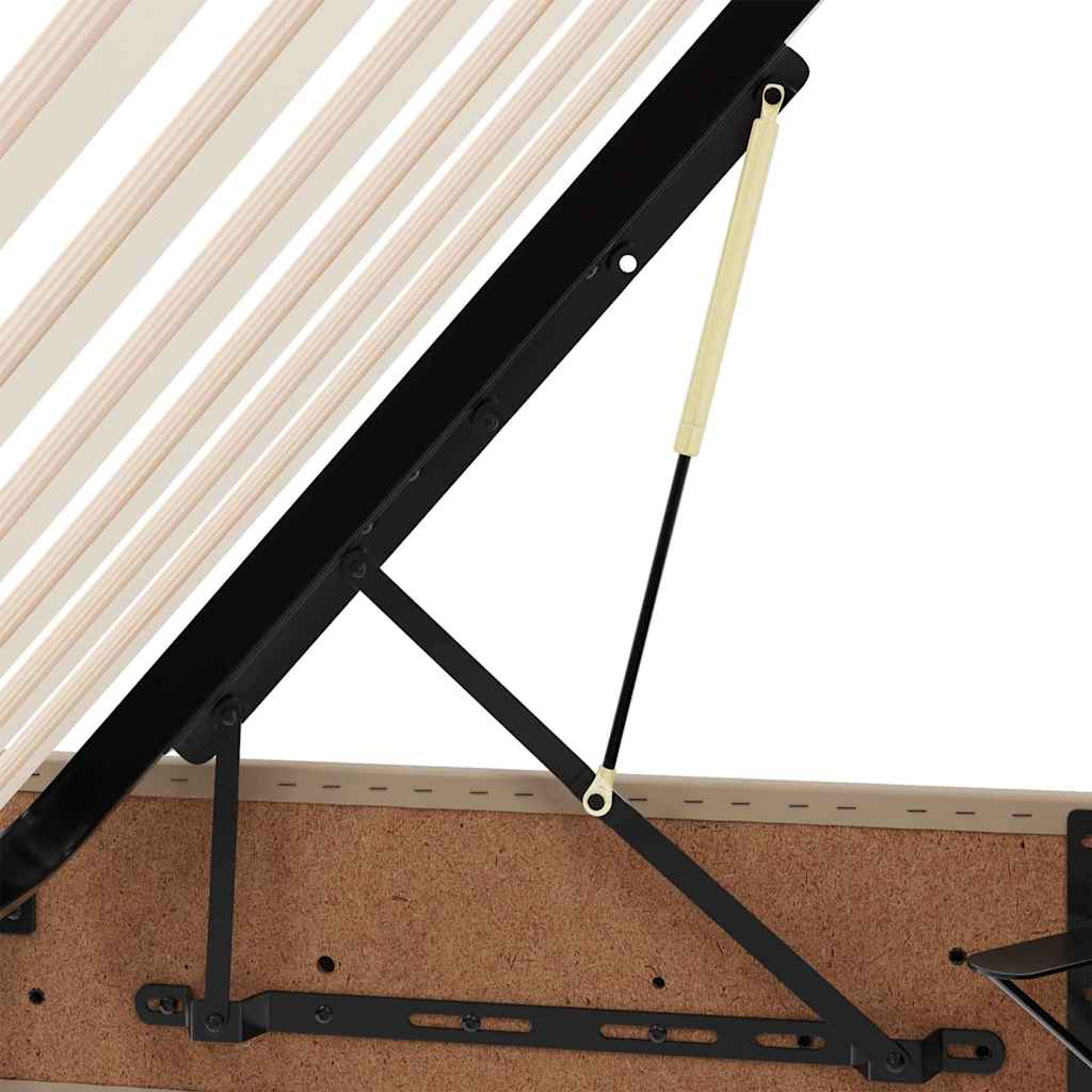 - Sistem de ridicare hidraulic Accesul la depozitul generos de sub pat e super simplu, datorită sistemului hidraulic care ridică salteaua fără efort. E perfect pentru a-ți organiza lucrurile, cum ar fi haine sau lenjerie, optimizând spațiul într-un dormitor mic.