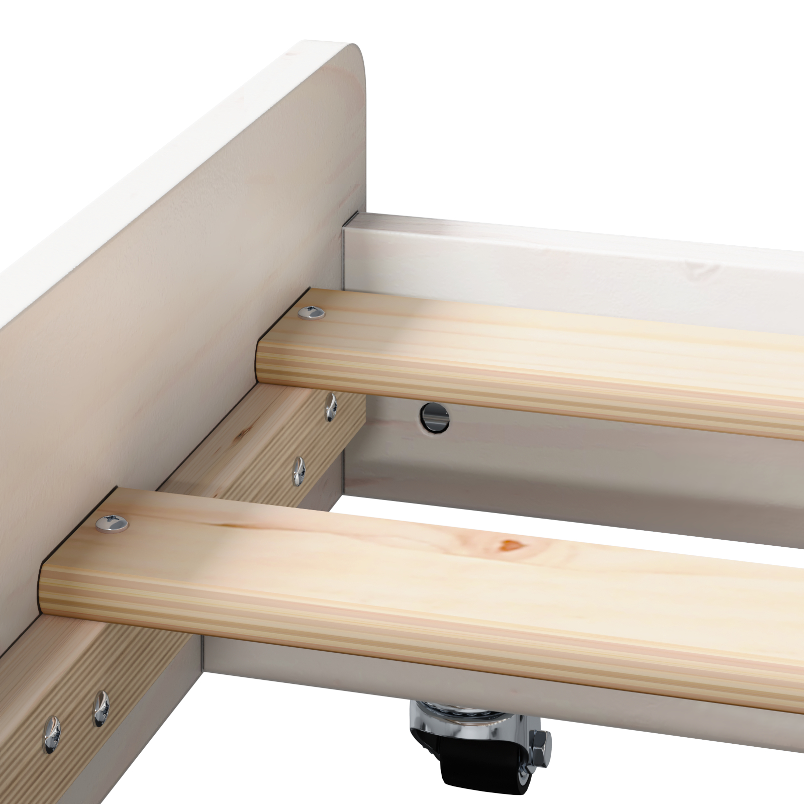 - Construcție robustă: Fabricat din lemn masiv de pin, acest cadru de pat e construit să dureze, gestionând ușor uzul cotidian.
