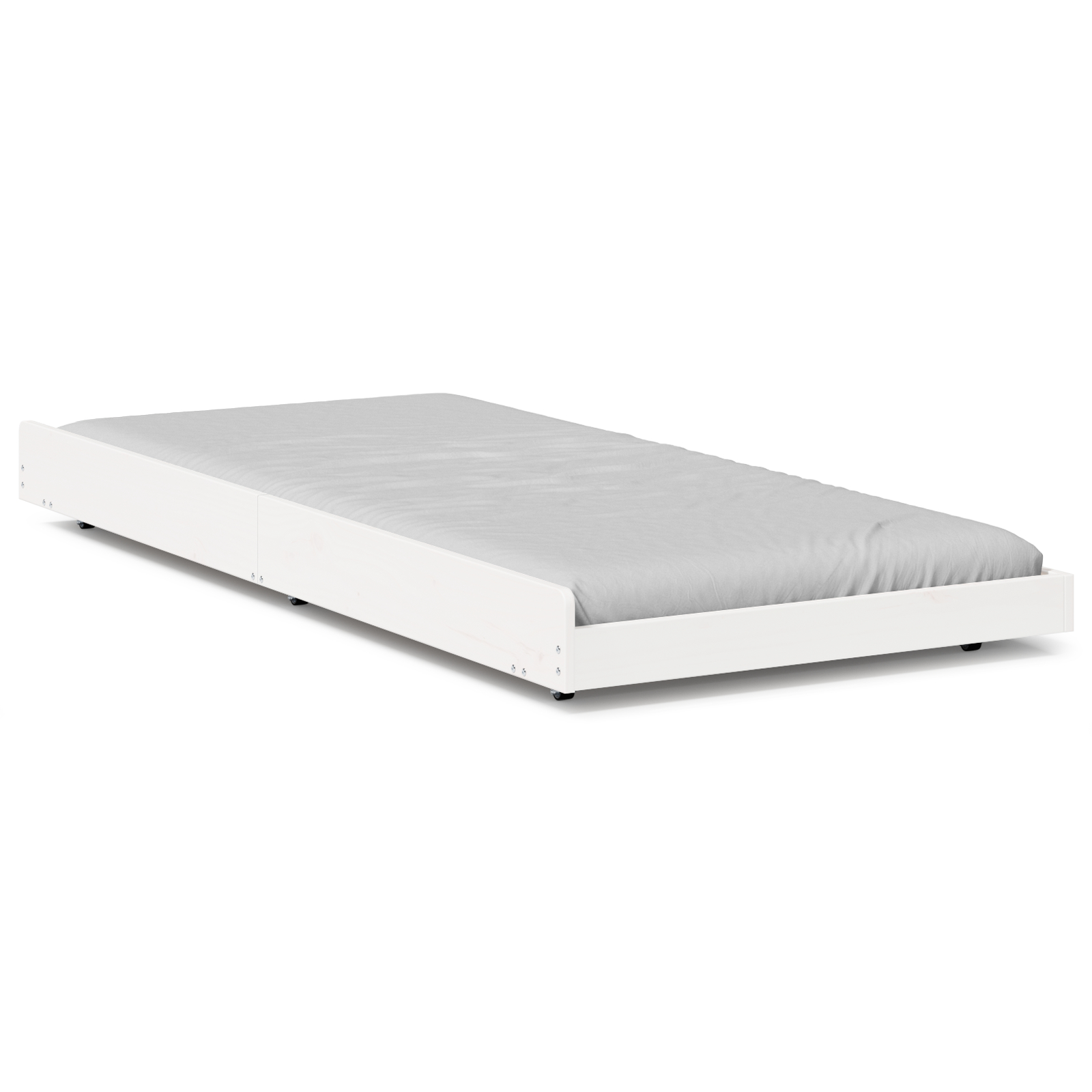 Acest cadru de pat din lemn masiv de pin are un design elegant care se potrivește perfect cu orice stil modern de dormitor, creând un spațiu plăcut pentru un somn liniștit. Cu finisajul său neted și culoarea albă trendy, îmbină funcționalitatea cu stilul, oferind o bază confortabilă pentru o saltea standard și arătând foarte bine.