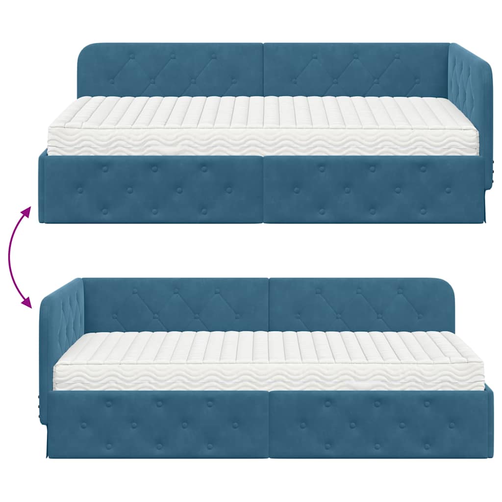 Cadru de pat colțar cu saltea albastru 100 x 200 cm Catifea
