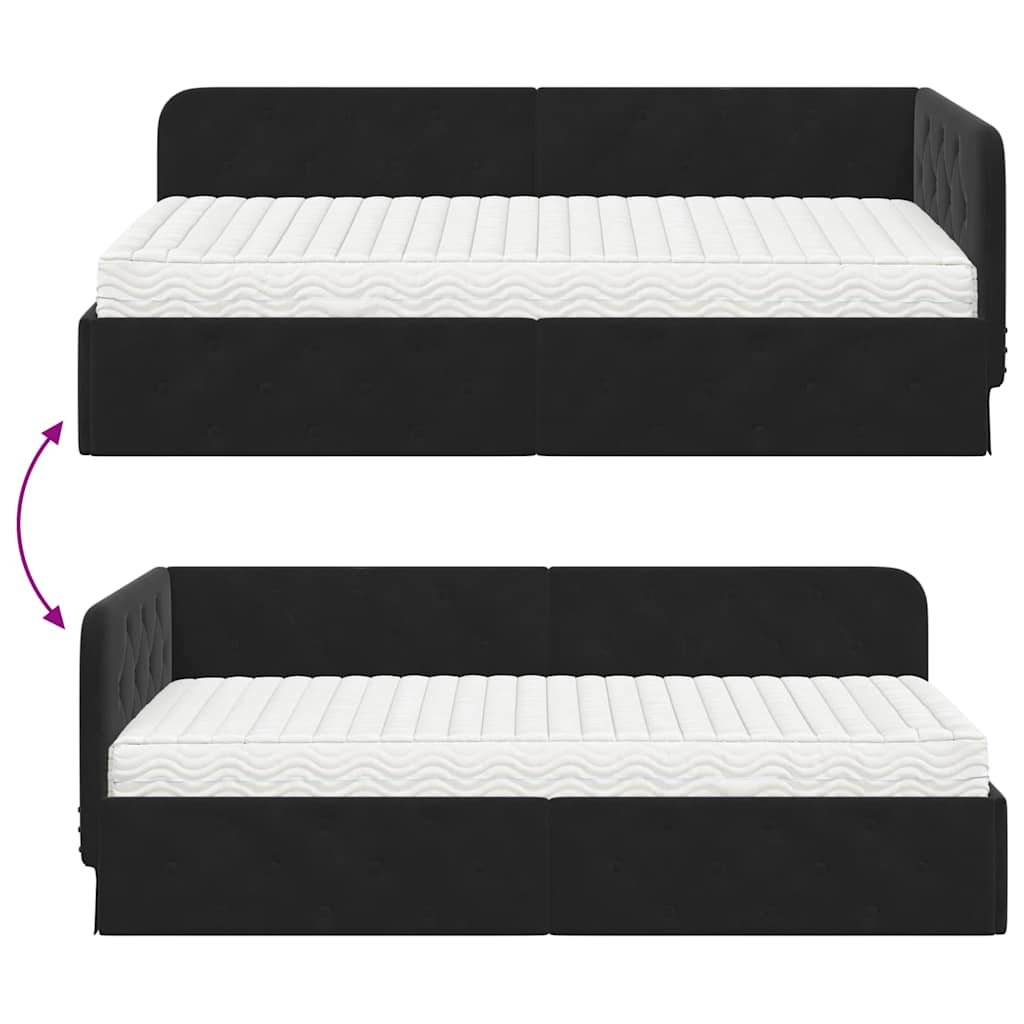 Cadru de pat colțar cu saltea Negru 100 x 200 cm Catifea