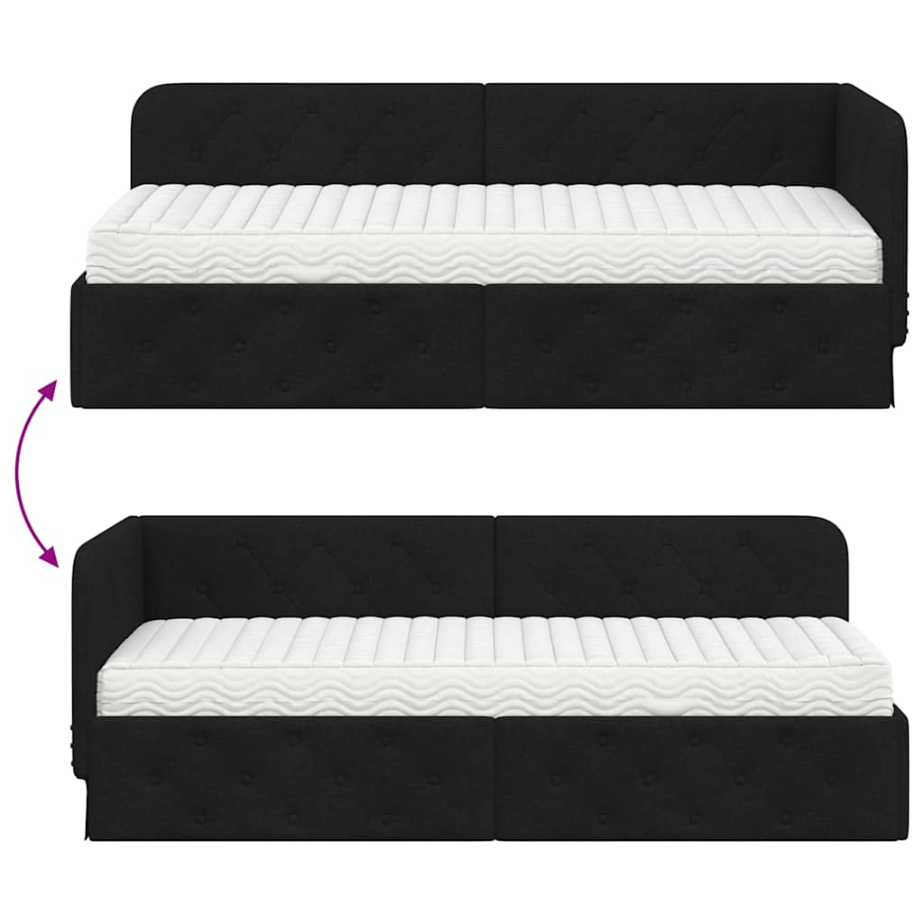 Acest cadru de pat colțar din țesătură are un design modern și se integrează ușor în colțul dormitorului tău, economisind spațiu și oferind un aspect fresh. Poate fi folosit atât ca pat de zi confortabil, cât și ca loc de dormit comod. Designul său simplu se potrivește perfect în apartamente urbane sau interioare minimaliste, o alegere excelentă pentru maximizarea spațiului, fără să renunți la stil.