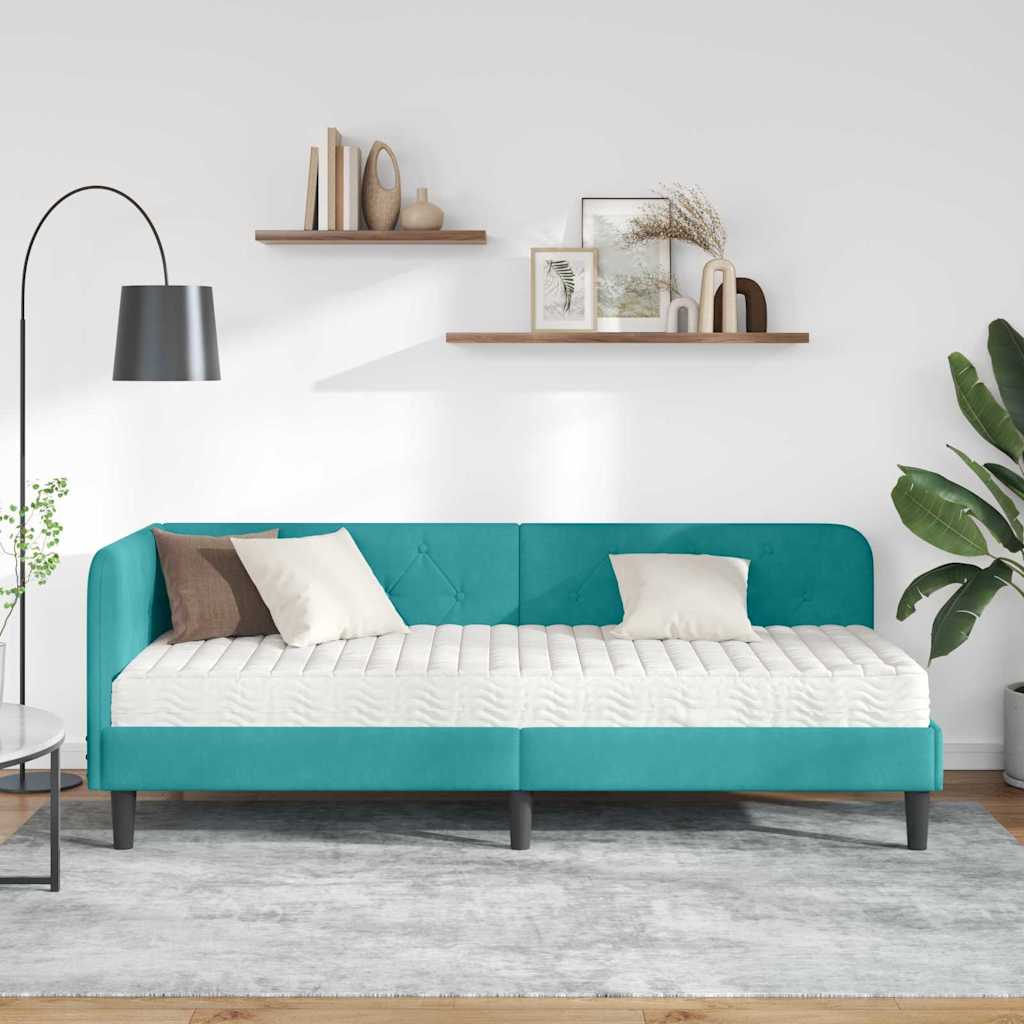 Acest cadru modern din stofă oferă o soluție trendy și utilă pentru orice dormitor. Cu designul său în formă de L, se potrivește perfect în colțuri și economisește spațiu, adaptându-se diferitelor aranjamente. Catifeaua îi dă o senzație moale și luxoasă, crescând confortul.