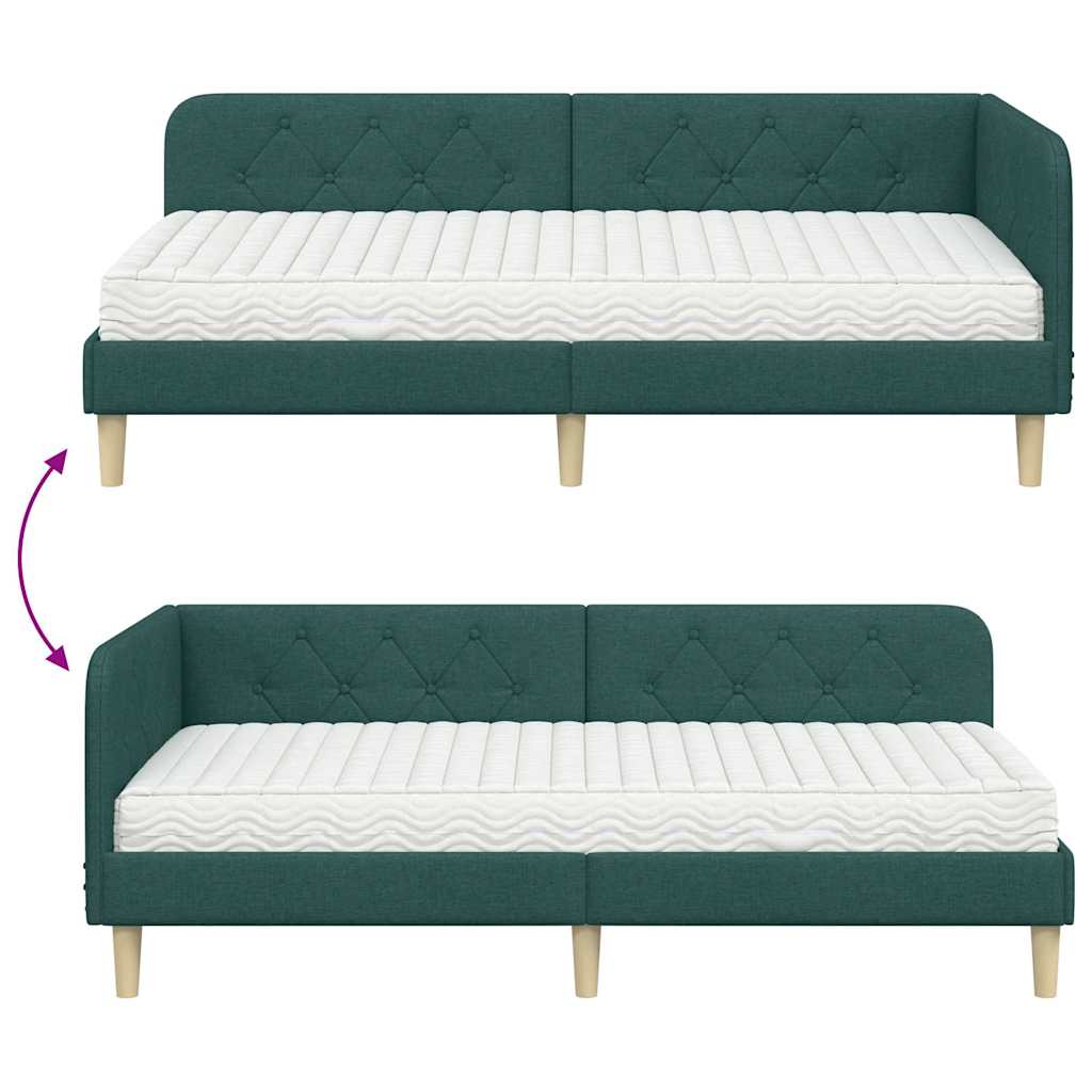 Cadru de pat colțar Verde închis 100 x 200 cm țesătură
