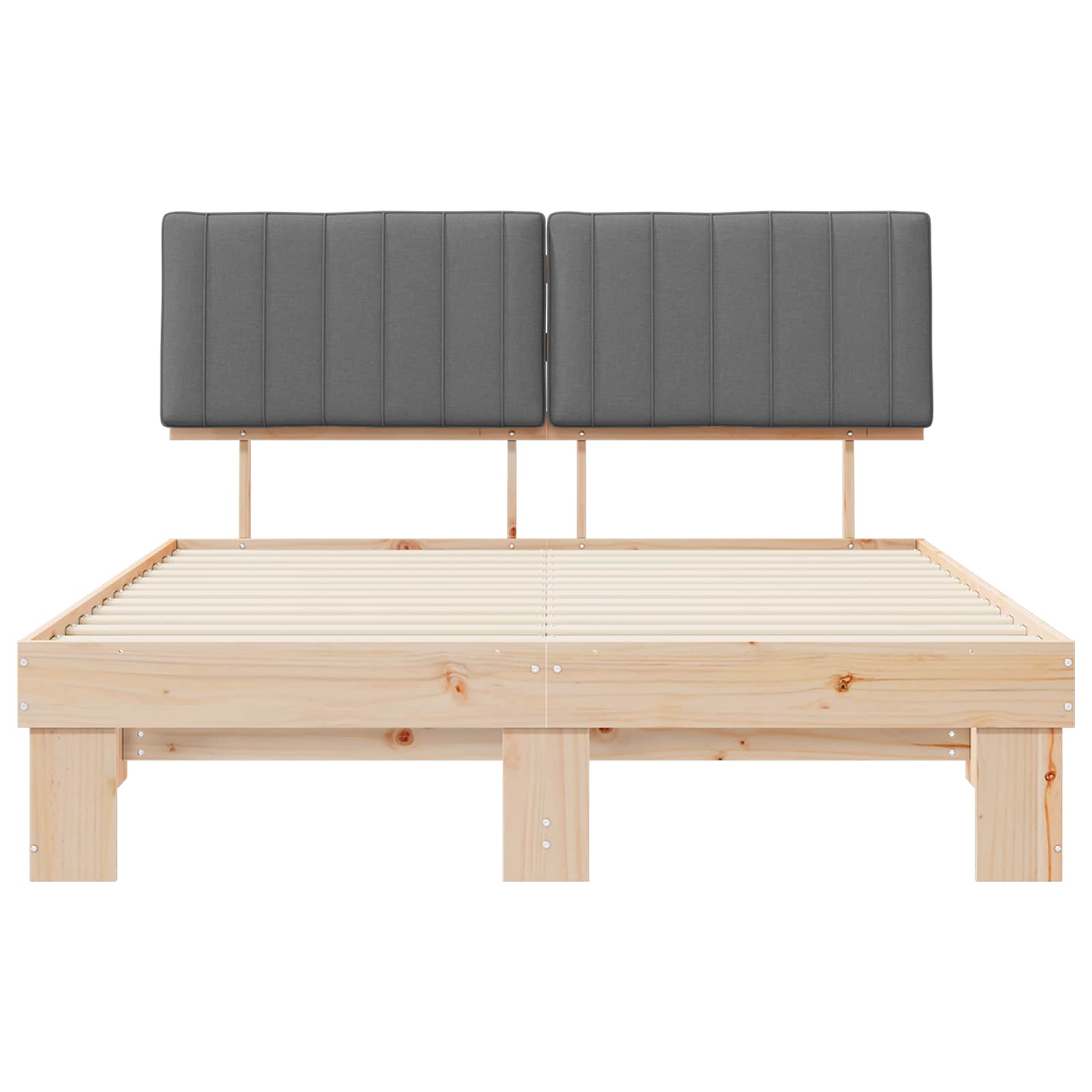 Cadru de pat din lemn cu spătar tapițat care arată super bine, combinație perfectă între linii clare și eleganță, ideal pentru dormitoare moderne. E construit din lemn masiv de pin pentru un suport stabil și chic, plus că te ajută să te odihnești într-un mediu plăcut. Tapițeria de pe spătar adaugă un contrast plăcut, făcând camera și mai primitoare.