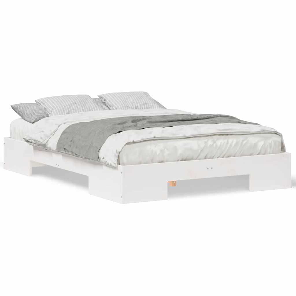 Cadru de pat de podea Alb 120 x 190 cm Lemn masiv de pin