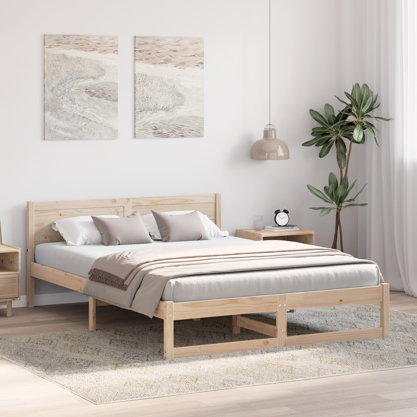 - Construcție Durabilă: Făcut din pin solid, acest cadru de pat e construit să dureze și susține până la 250 kg, dându-ți siguranță în utilizare.